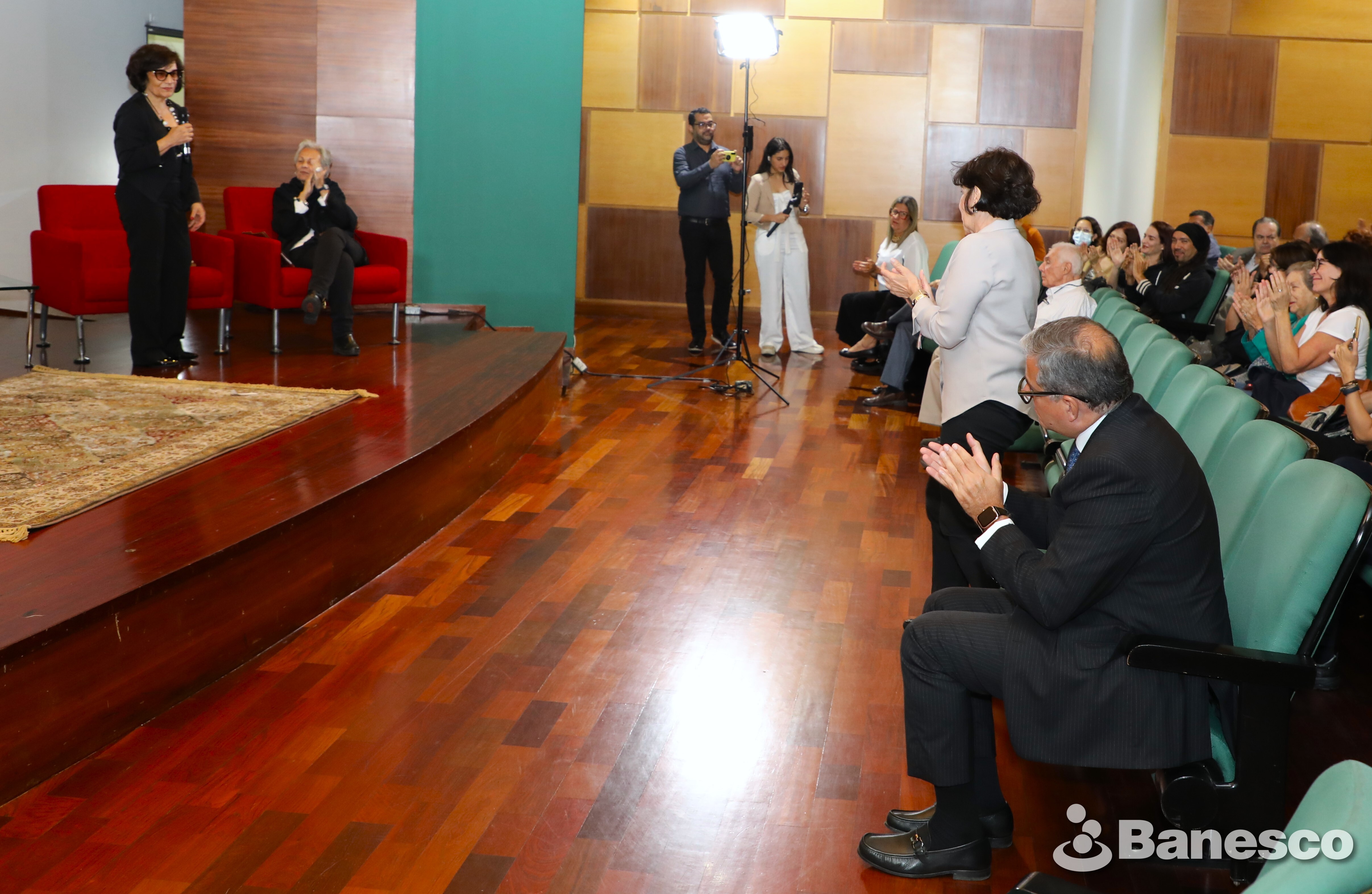 Renaud Coromoto, Julieta León e Invitados del bautizo y presentación del Libro "Agua que corre lenta" en el Auditorio Fernando Crespo Suñer de Ciudad Banesco.