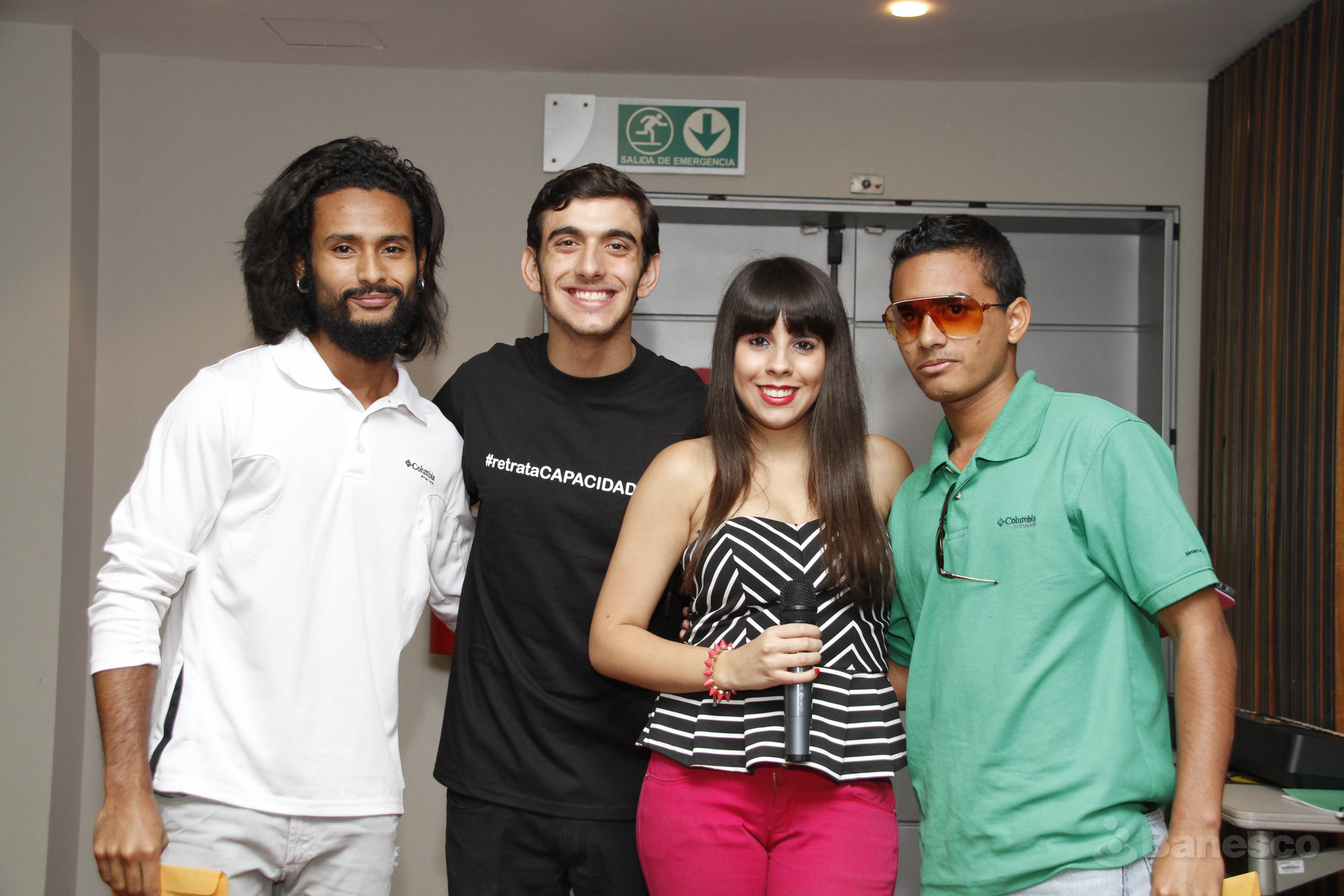 Mariana Guzmán presentadora del evento junto a colegas durante el Concurso fotográfico sobre personas con discapacidad ¡Aquí estamos 2014! el cual se llevo a cabo en las instalaciones de Ciudad Banesco.
