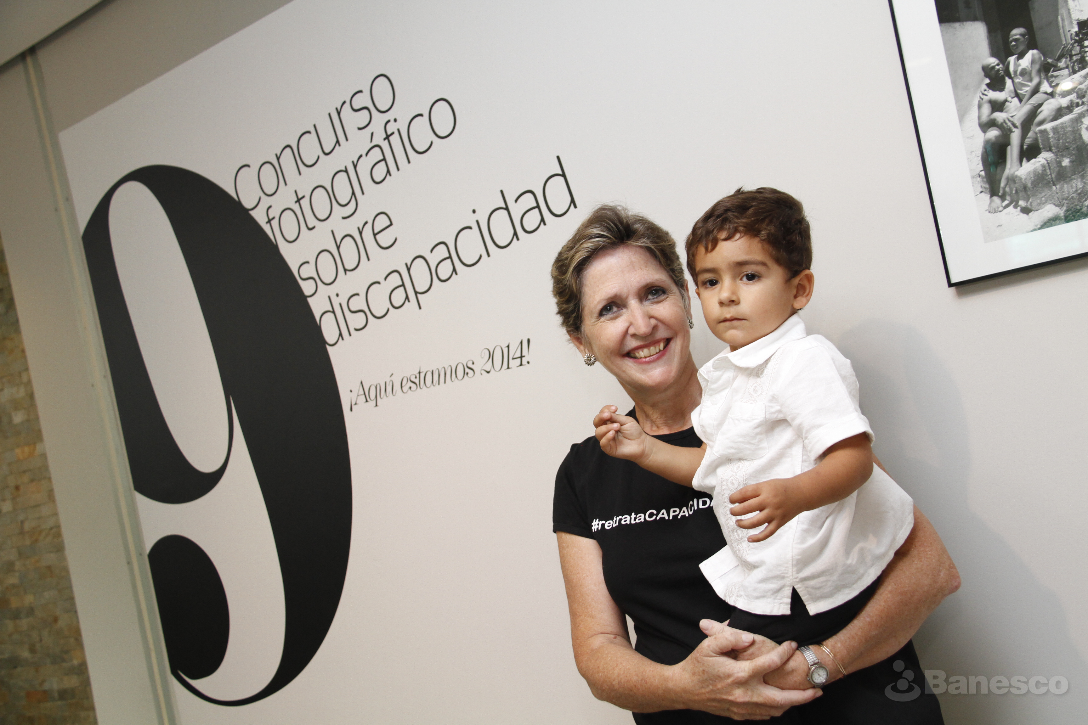 Angela Couret, directora de la Fundación Paso a Paso junto a participante durante la 9° edición del Concurso fotográfico ¡Aquí estamos 2014! el cual se llevo acabo en las instalaciones de Ciudad Banesco.