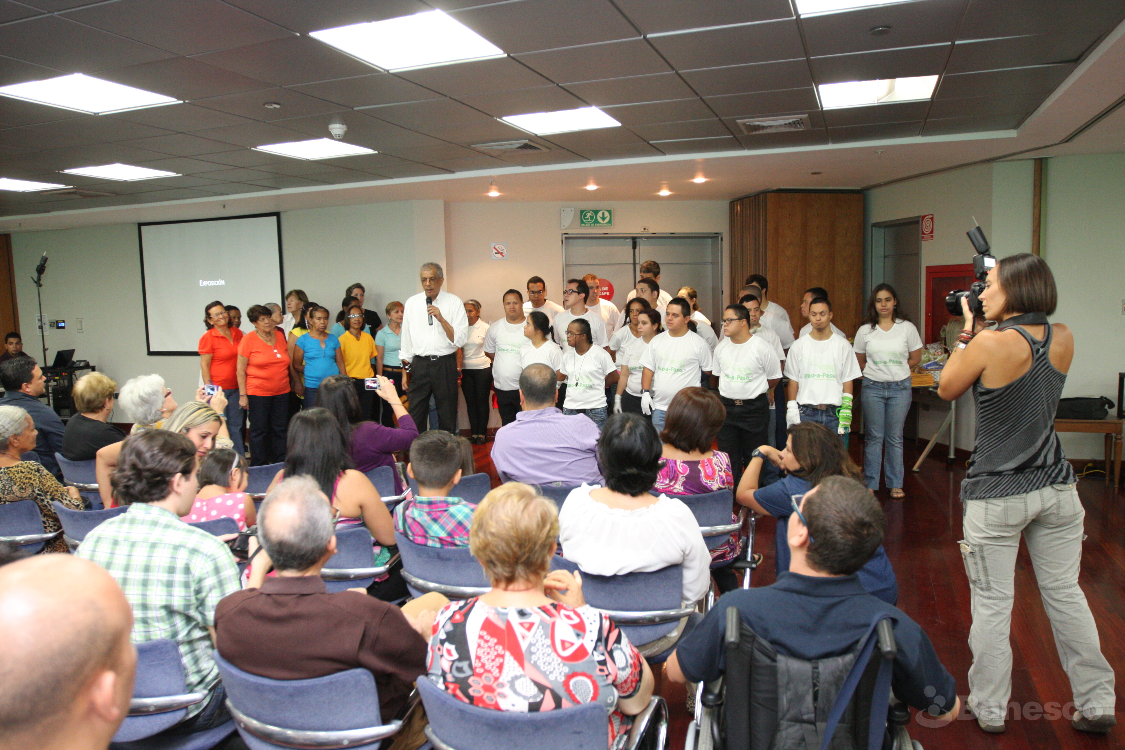 Coro de la Fundación Paso a Paso y asistentes durante la entrega de premios realizado en las instalaciones de Ciudad Banesco.