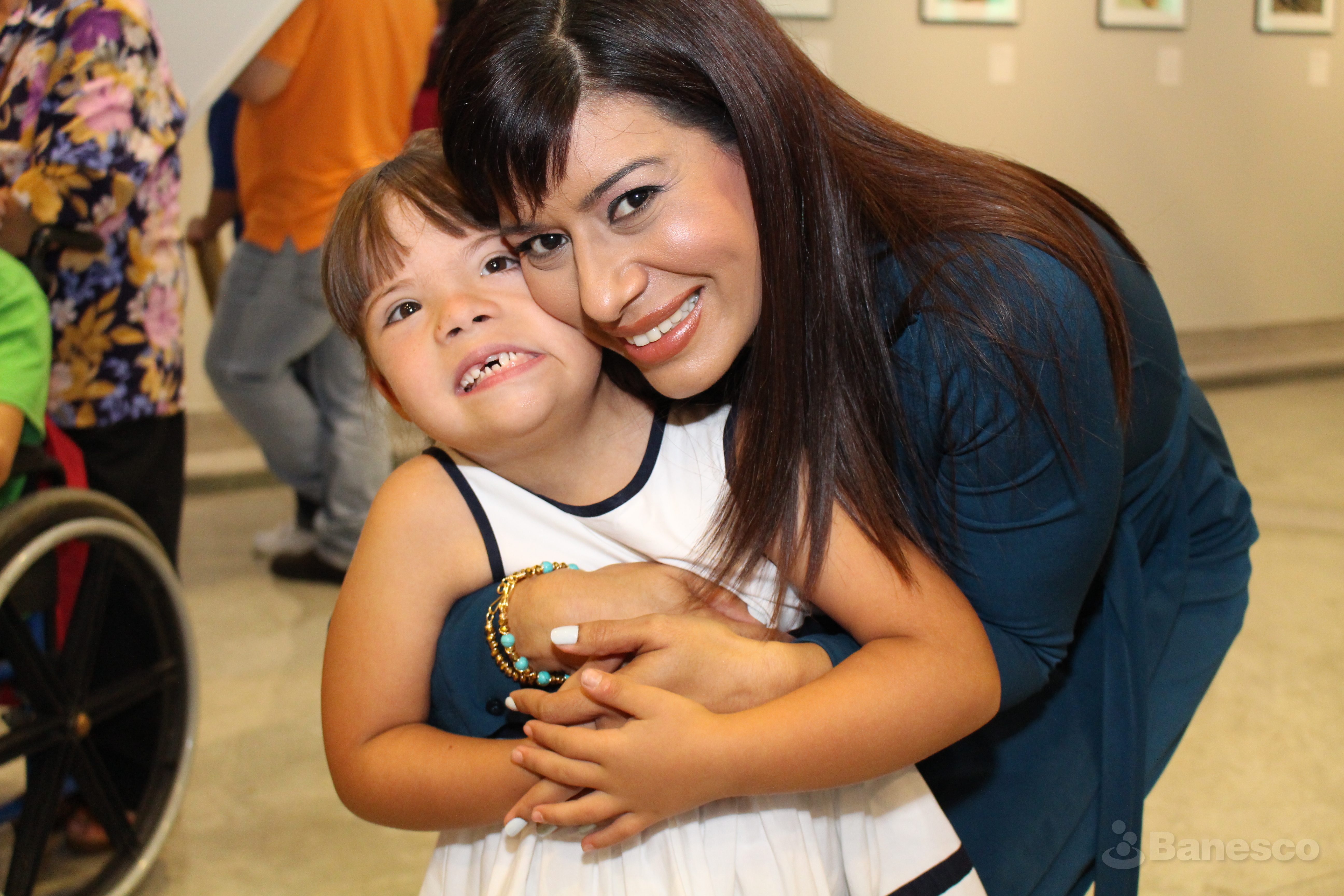 Gaudy Perozo y participante en los espacios de Ciudad Banesco en el trascurso de la entrega de premios del Concurso Fotográfico sobre Personas con Discapacidad ¡Aquí estamos 2016!.