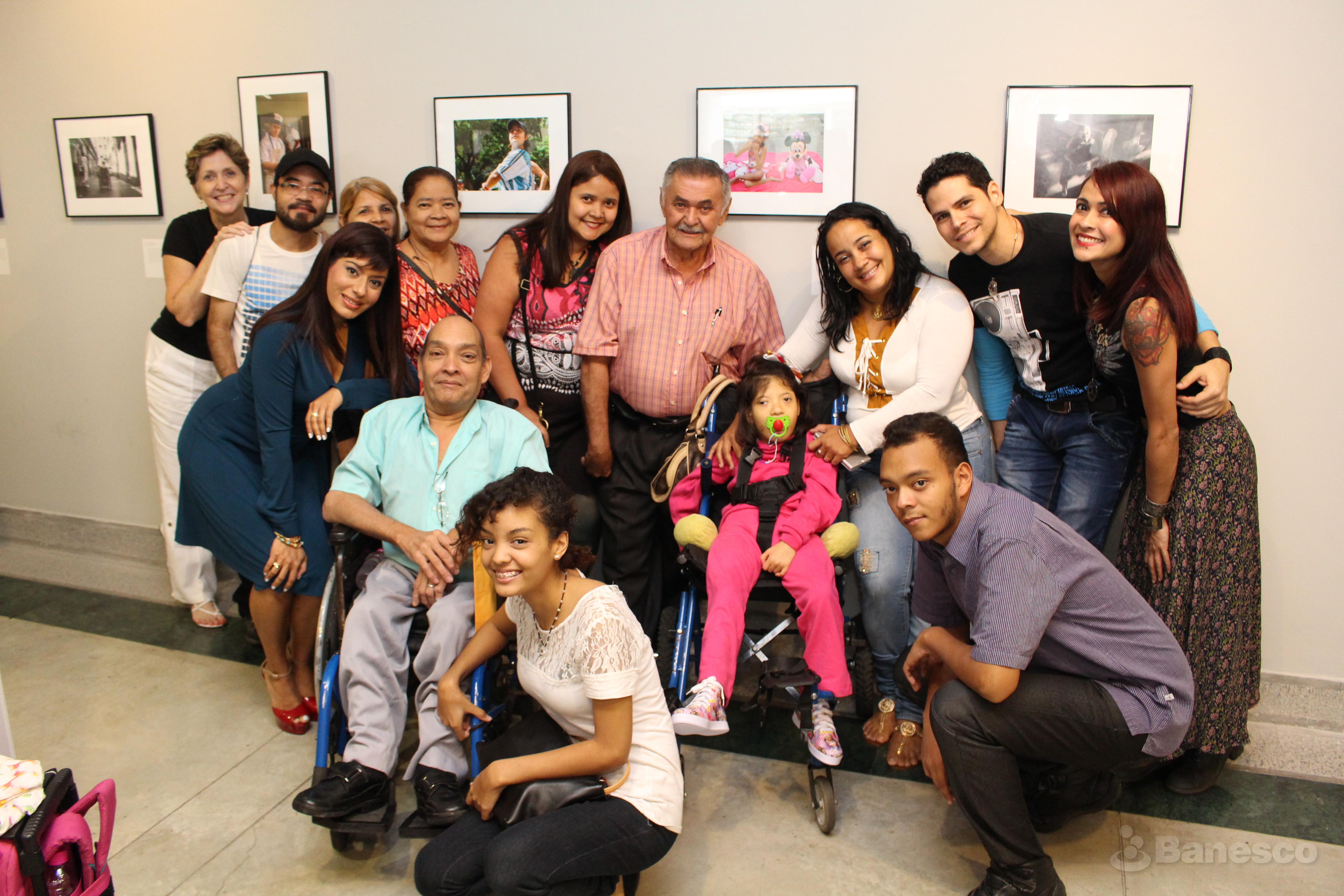 Angela Couret, Gaudy Perozo y participantes del Concurso Fotográfico sobre Personas con Discapacidad ¡Aquí estamos 2016!, realizado en Banesco para los integrantes de la Fundación Paso a Paso.