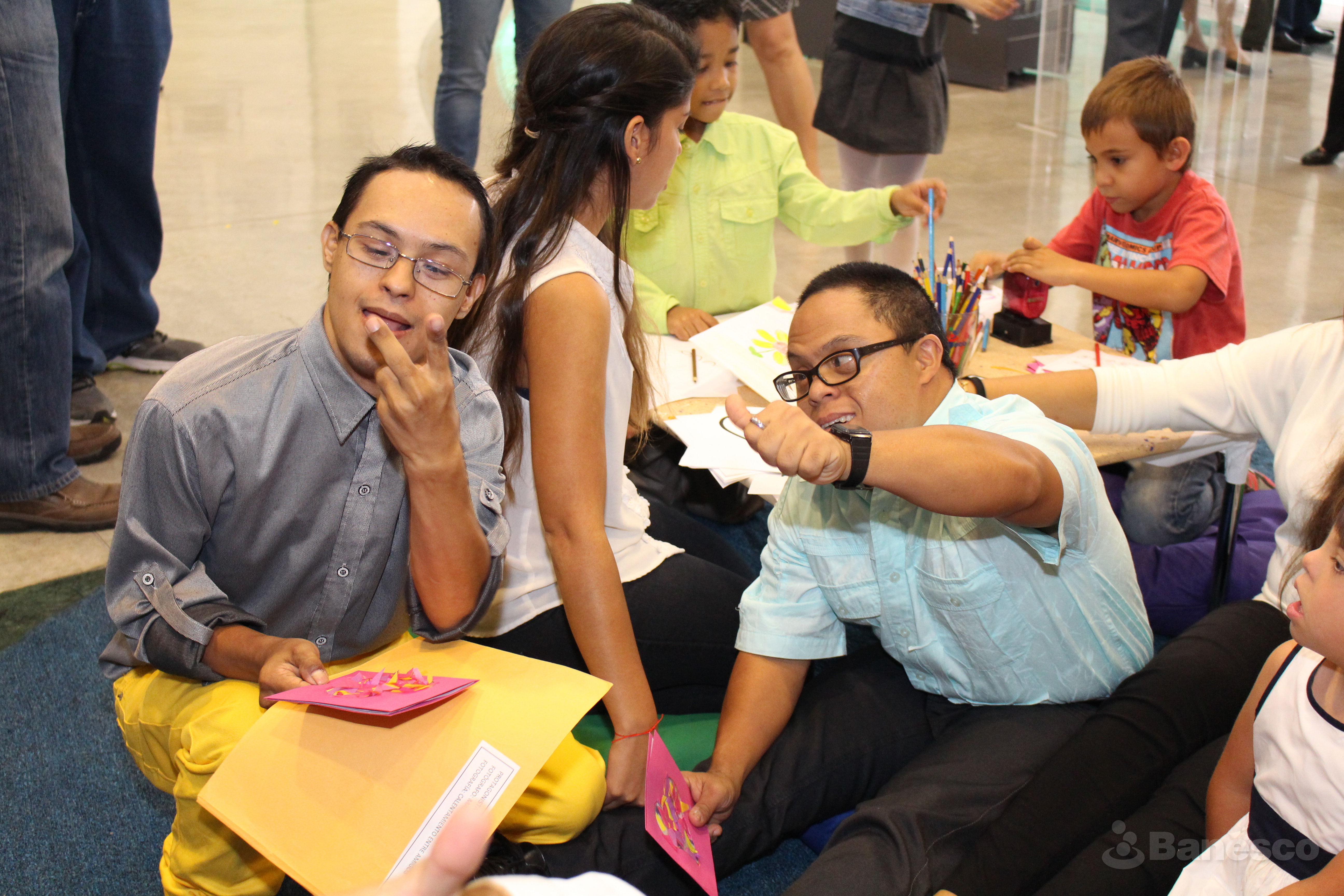Participantes de la Fundación Paso a Paso en los espacios de Ciudad Banesco durante la entrega de reconocimientos de la 11° edición del Concurso Fotográfico sobre Personas con Discapacidad ¡Aquí estamos 2016!.