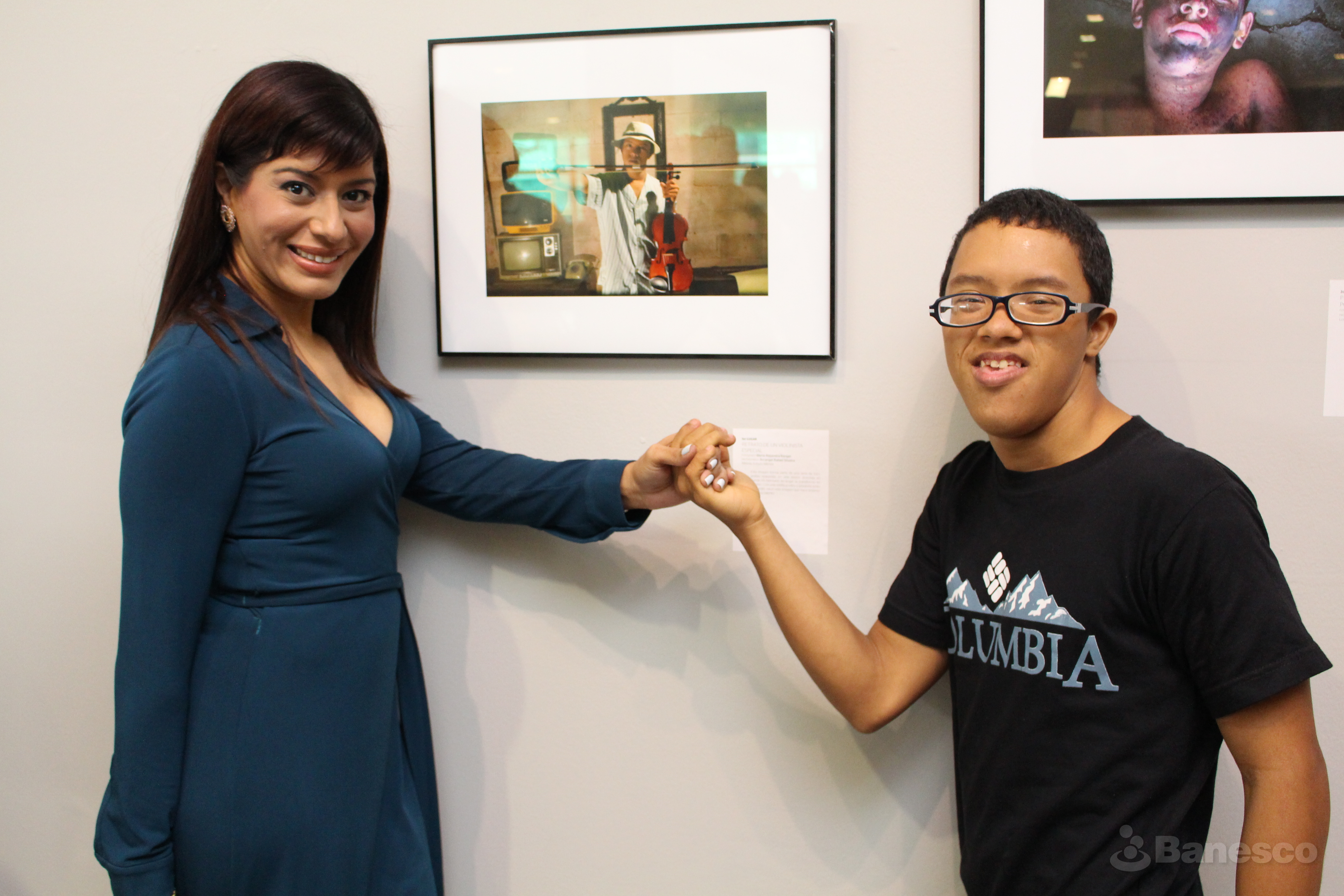 Gaudí Perozo presentadora y periodista venezolana junto a Arcángel Silveira durante la exposición fotográfica con motivo de celebrarse la 11° edición del concurso ¡Aquí estamos 2016! realizado en los espacios de Ciudad Banesco.
