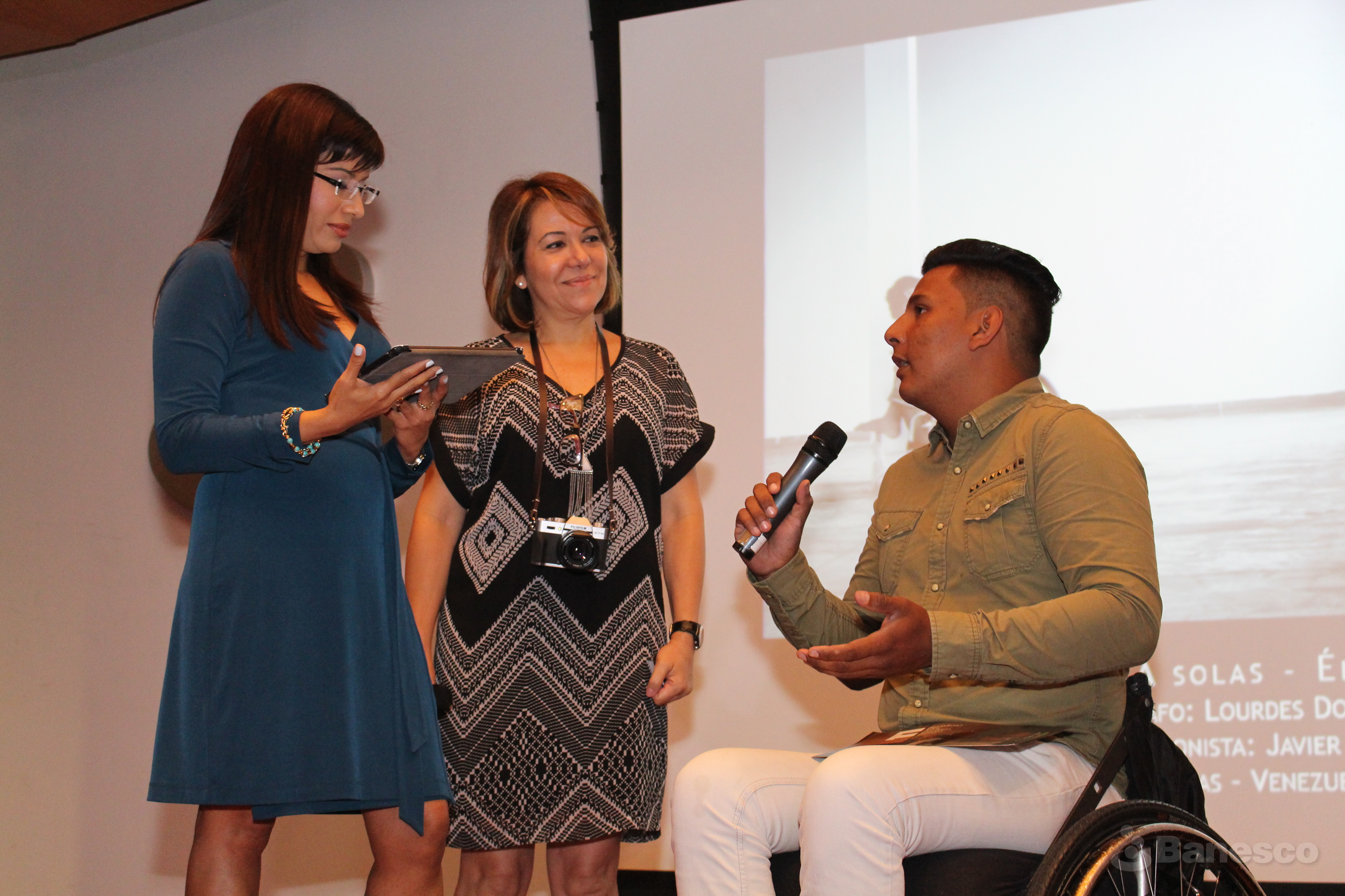 Gaudí Perozo junto a fotógrafa y participante del Concurso Fotográfico sobre Personas con Discapacidad ¡Aquí estamos 2016!.