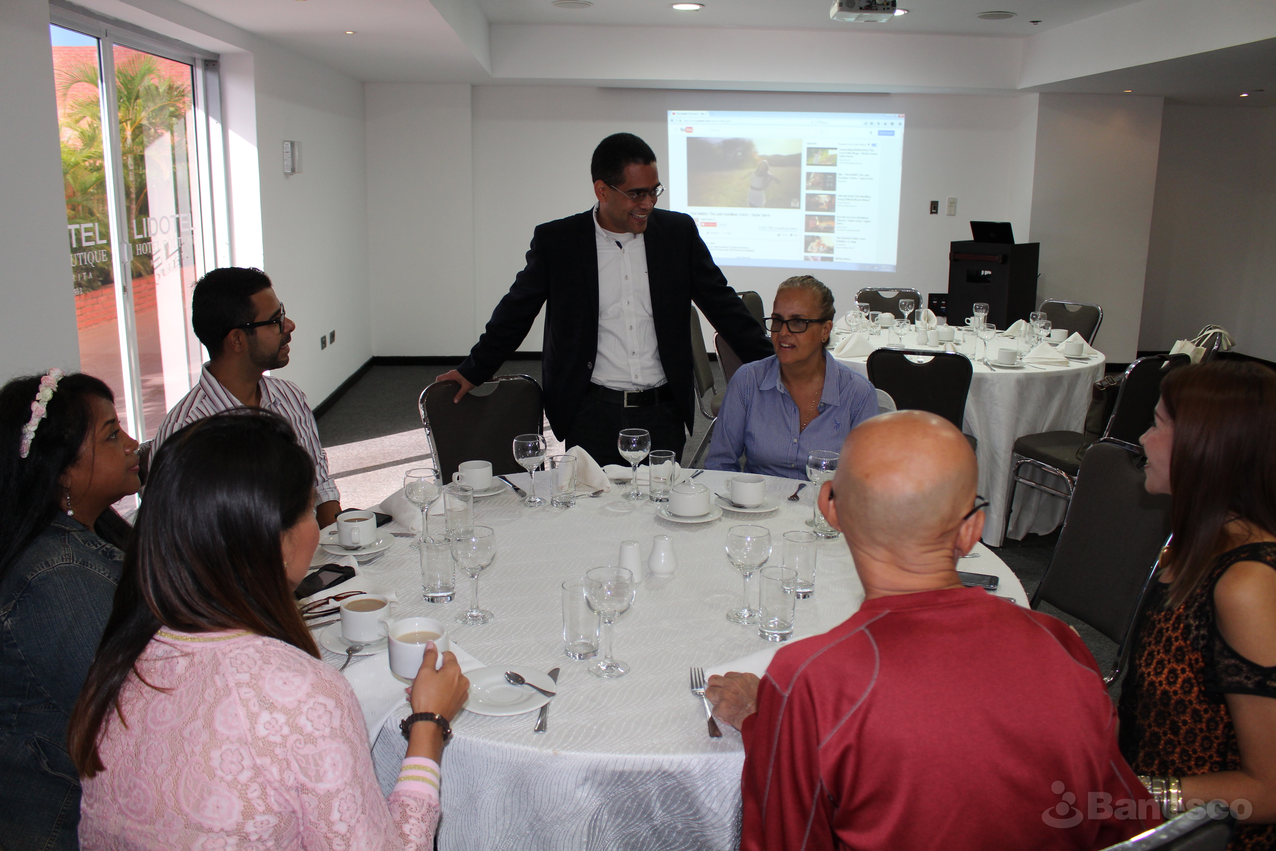 Norberto Méndez de la Vp. de Comunicaciones y Responsabilidad Social Empresarial de Banesco, compartiendo con los invitados durante el desayuno realizado en el Centro de Convenciones del C.C Sambil de la Isla de Margarita, con motivo de celebrarse la Feria Internacional del Libro del Caribe (FILCAR) 2017.
