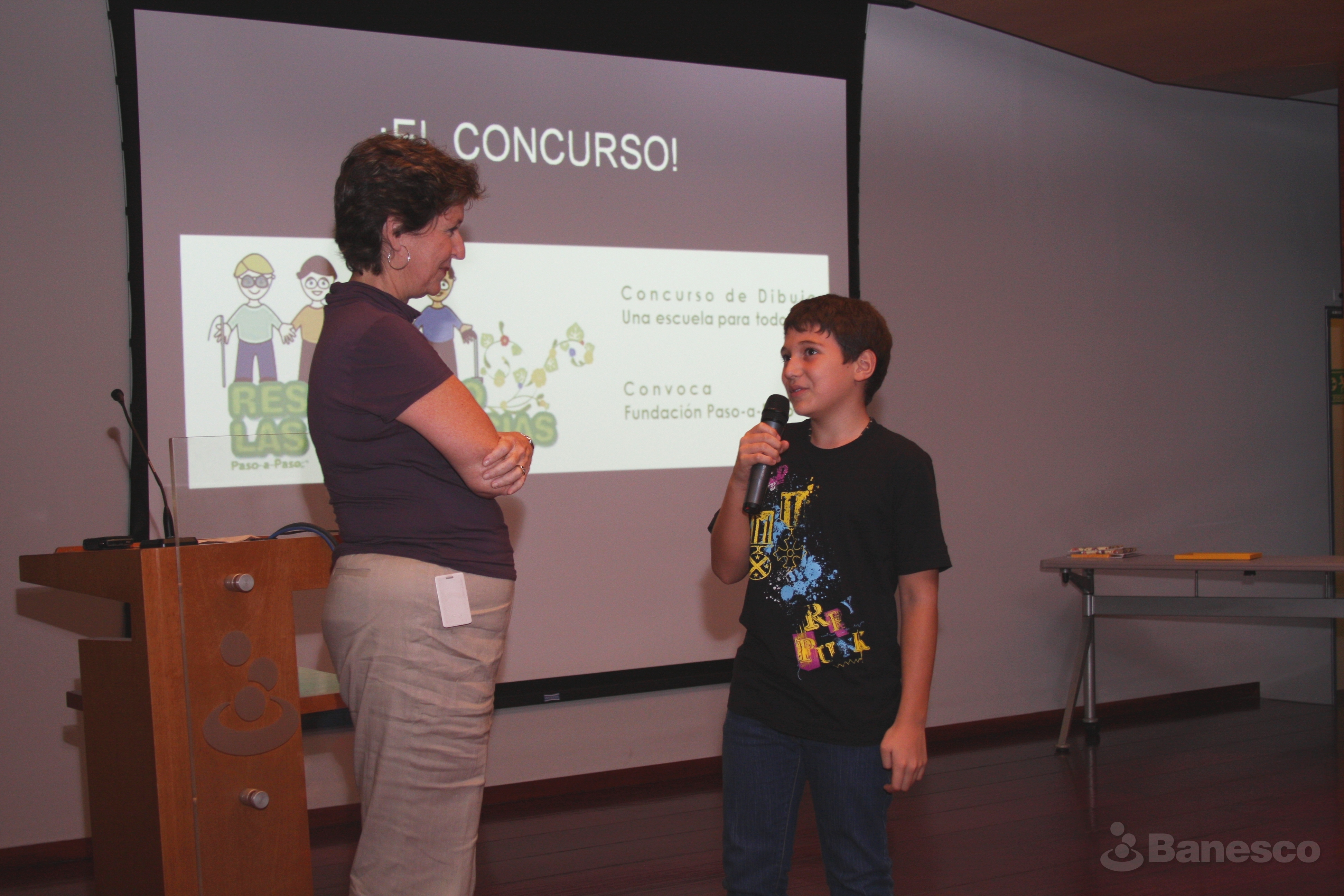 Angela Couret junto a Daniel Olivero, durante la entrega de premios del concurso de dibujo "Una escuela para todos" del programa "Respetando las Diferencias".