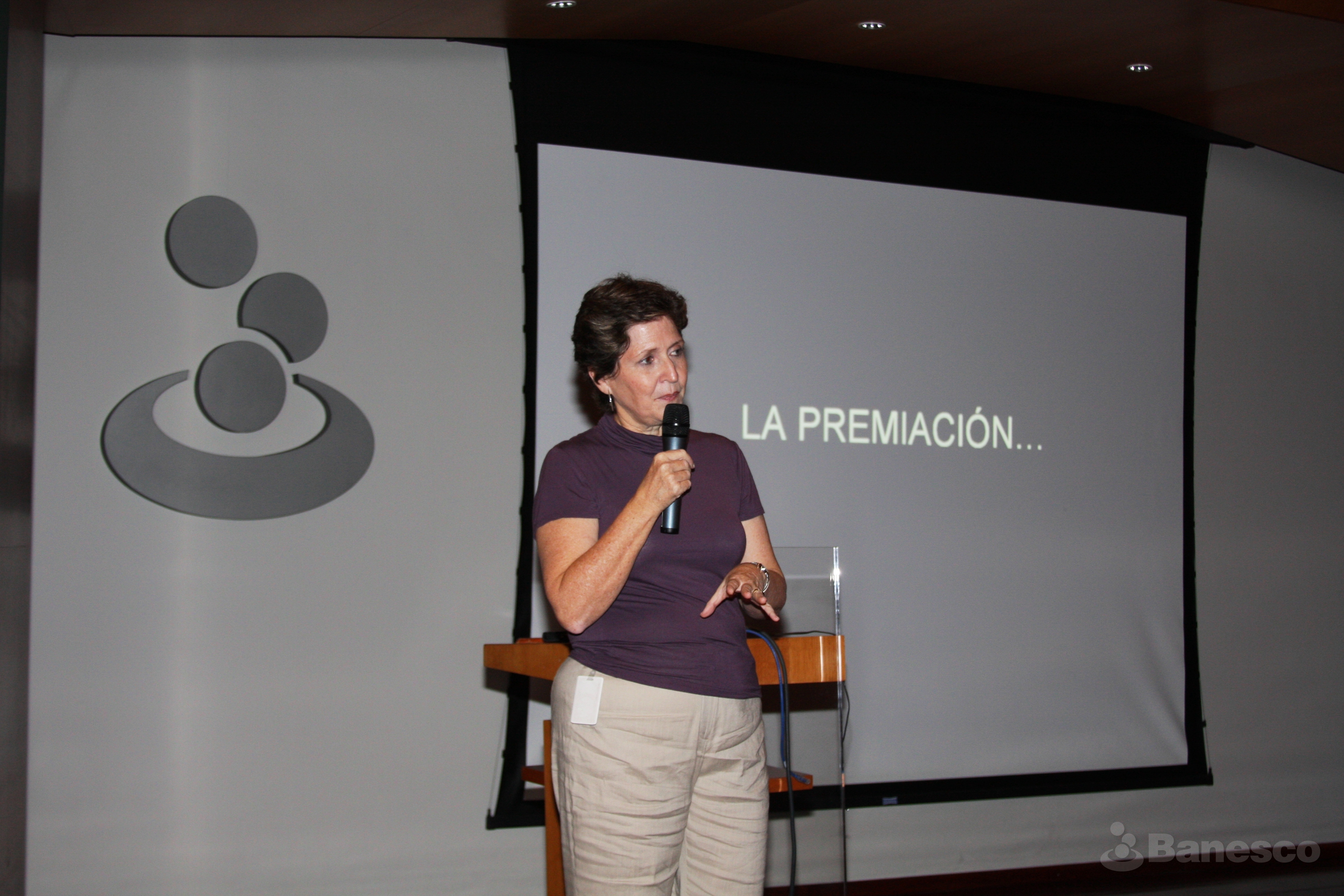 Palabras de la directora de la Fundación Paso a Paso Angela Couret, durante la entrega de obsequio del concurso de dibujo del programa "Respetando las Diferencias" realizado en los espacios de Ciudad Banesco.