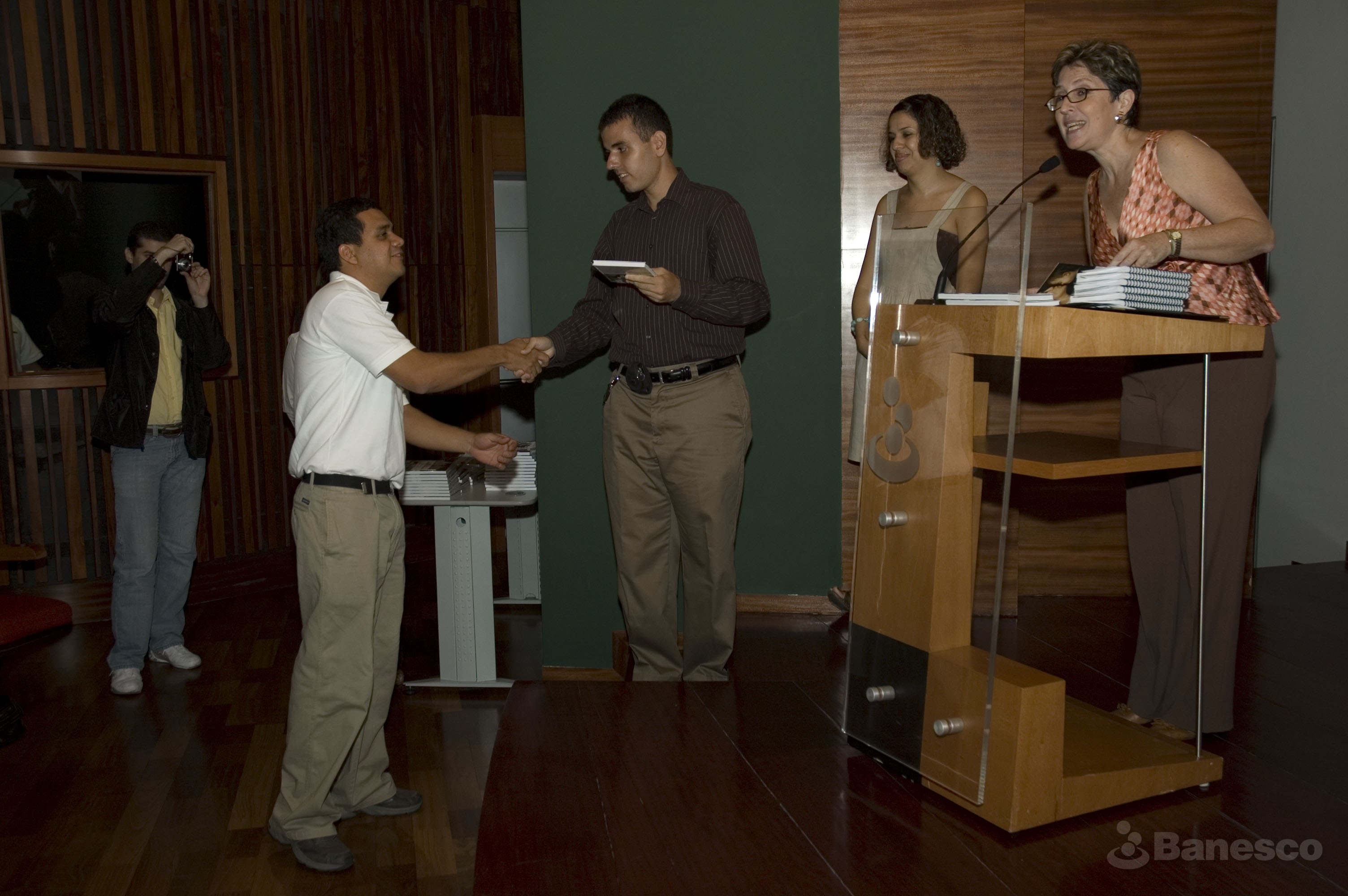 Angela Couret junto a colegas en la entrega de libros en el auditorio Fernando Crespo Suñer durante la 3° edición del Concurso Fotográfico sobre Discapacidad ¡Aquí Estamos 2008! .