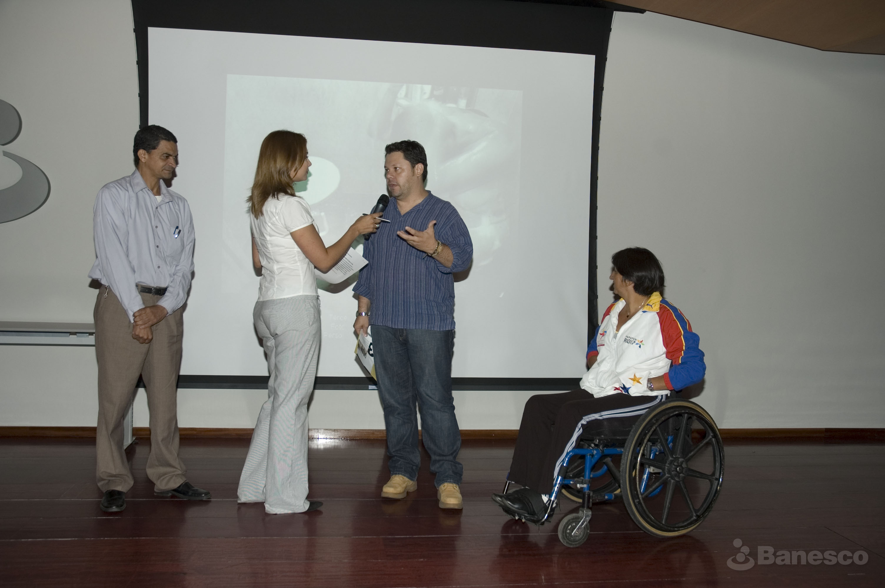 Presentadora junto a compañeros en la entrega de premios de la 3° edición del Concurso Fotográfico sobre Discapacidad ¡Aquí Estamos 2008! .