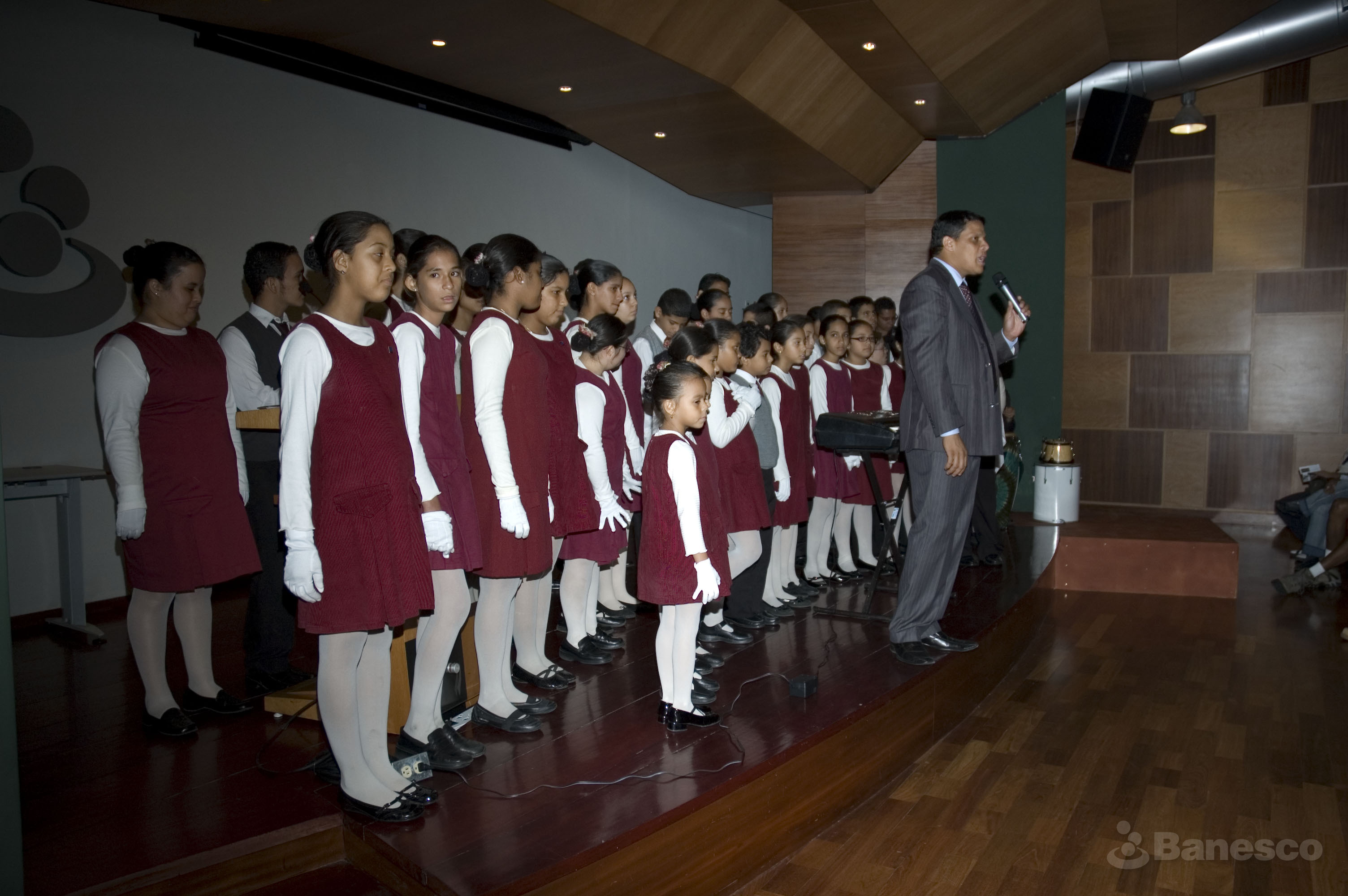 El grupo de baile de los niños de la Fundación Paso a Paso después de su presentación en el auditorio Fernando Crespo Suñer de Ciudad Banesco.