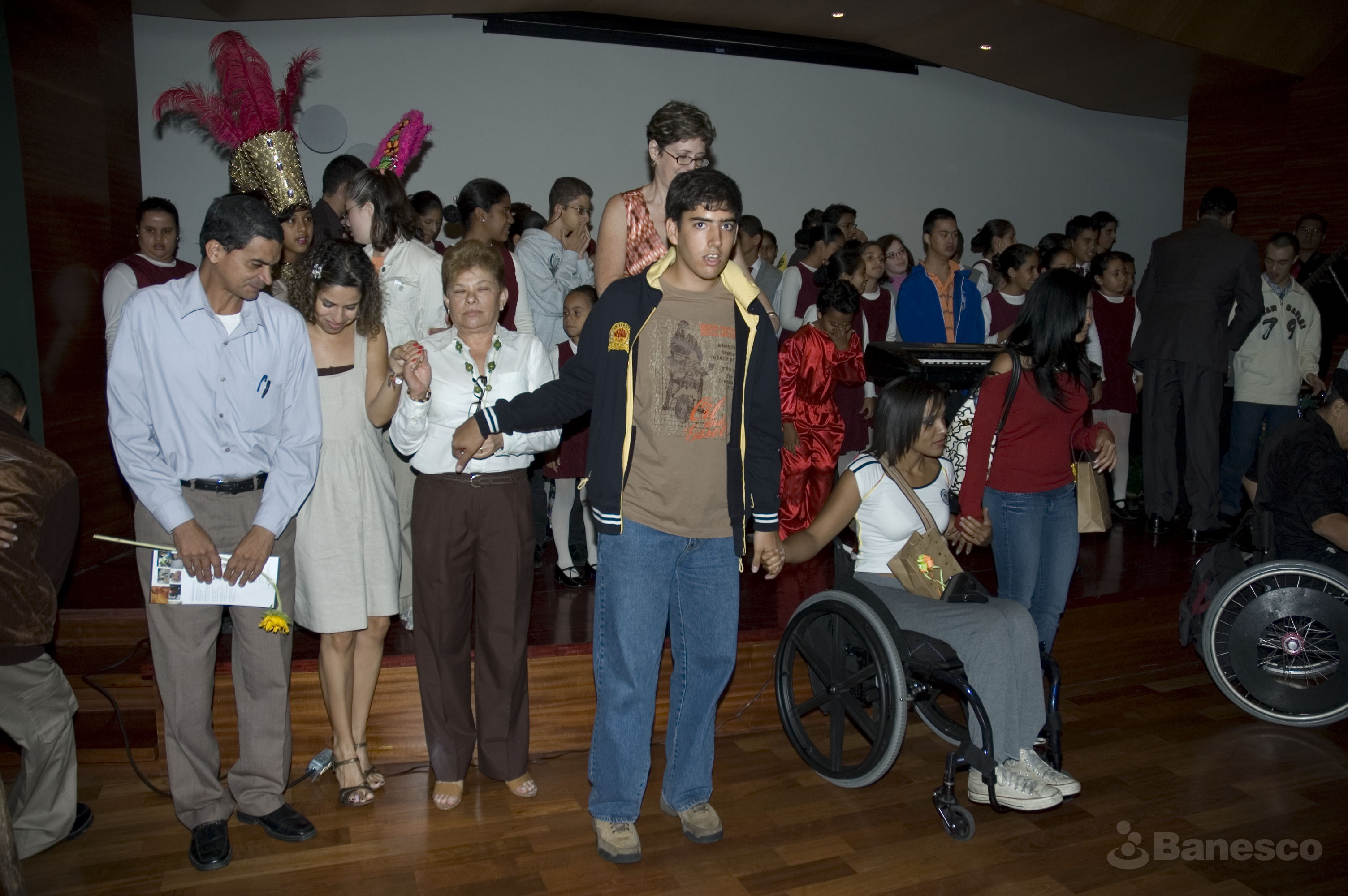 Participantes de la Fundación Paso a Paso en las instalaciones de Ciudad Banesco en la celebración del 3° Concurso Fotográfico sobre Discapacidad ¡Aquí Estamos 2008! .