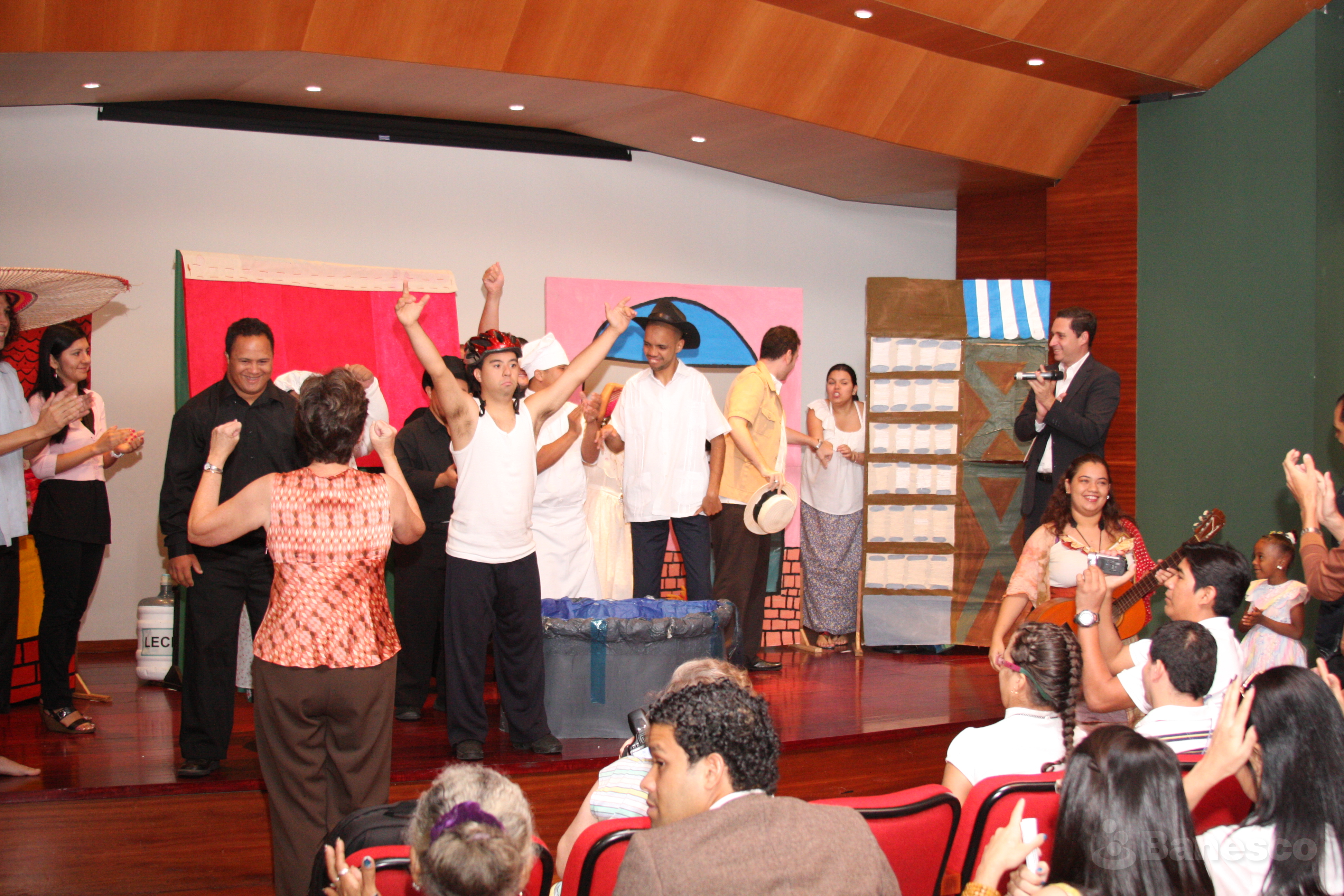 Participantes del concurso después de su presentación de la obra de teatro realizada posterior al evento de entrega de premios en la 6° edición del Concurso Fotográfico sobre Personas con Discapacidad ¡Aquí Estamos 2011!.
