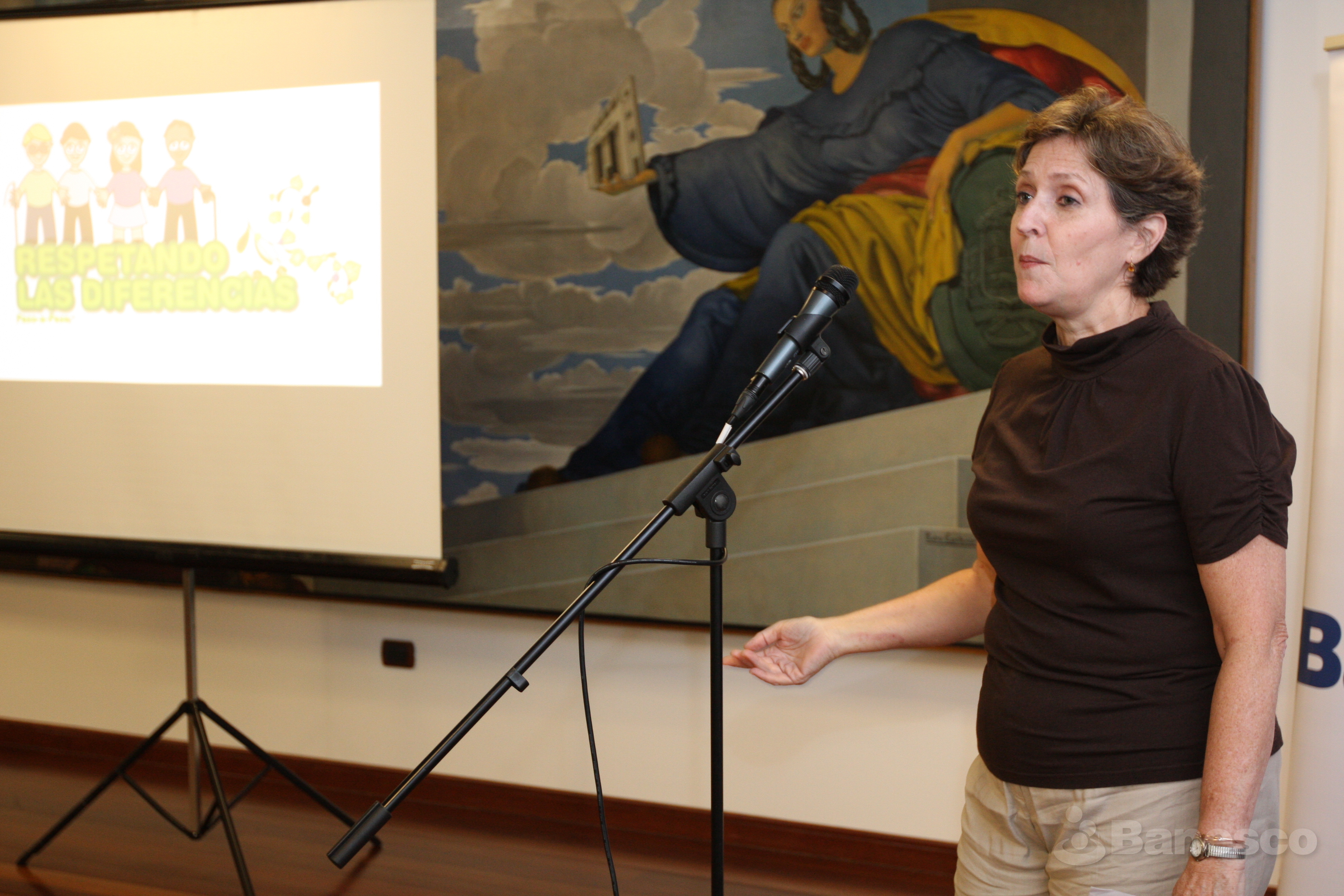 Palabras de Angela Couret, directora de la Fundación Paso a Paso, dando inicio a la entrega de premios del "concurso de Dibujo "Una escuela para todos" del año 2013.