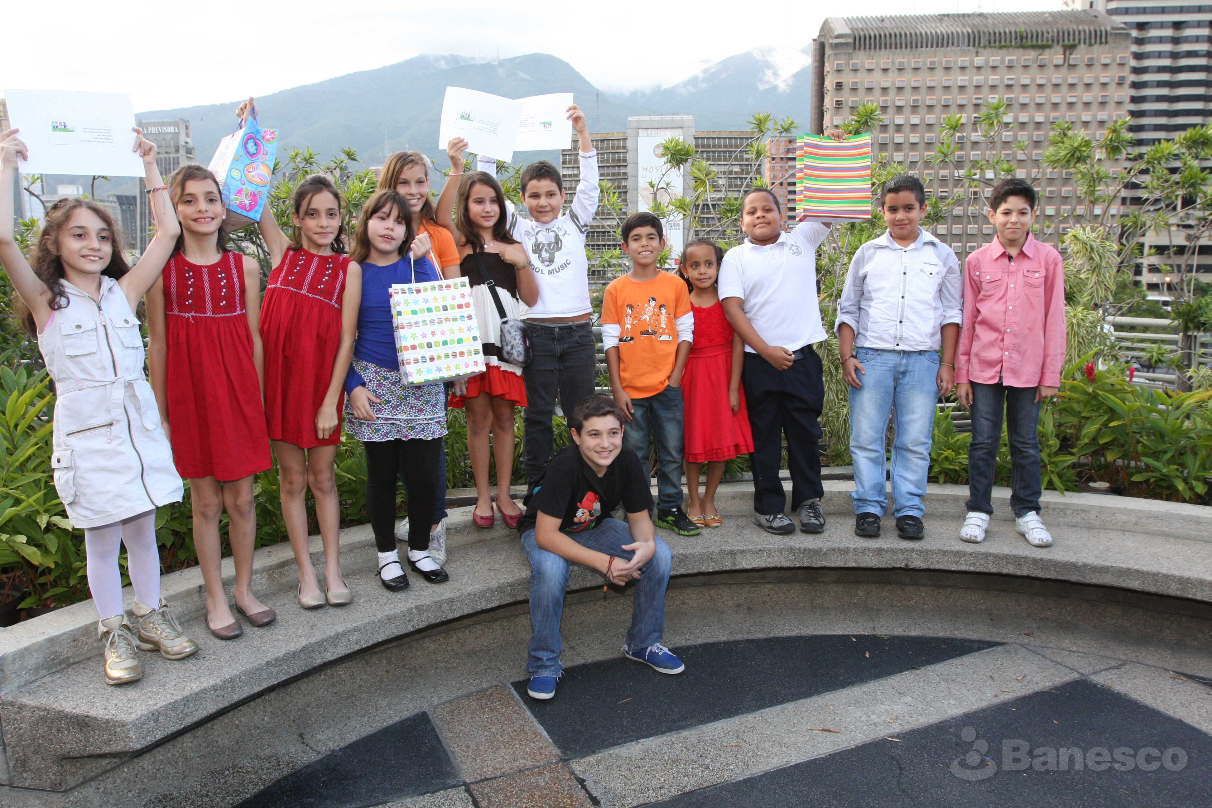 Niños participantes del programa "Respetando las Diferencias", organizado por la Fundación Paso a Paso en alianza con Banesco Banco Universal realizado en los espacios de la institución bancaria.