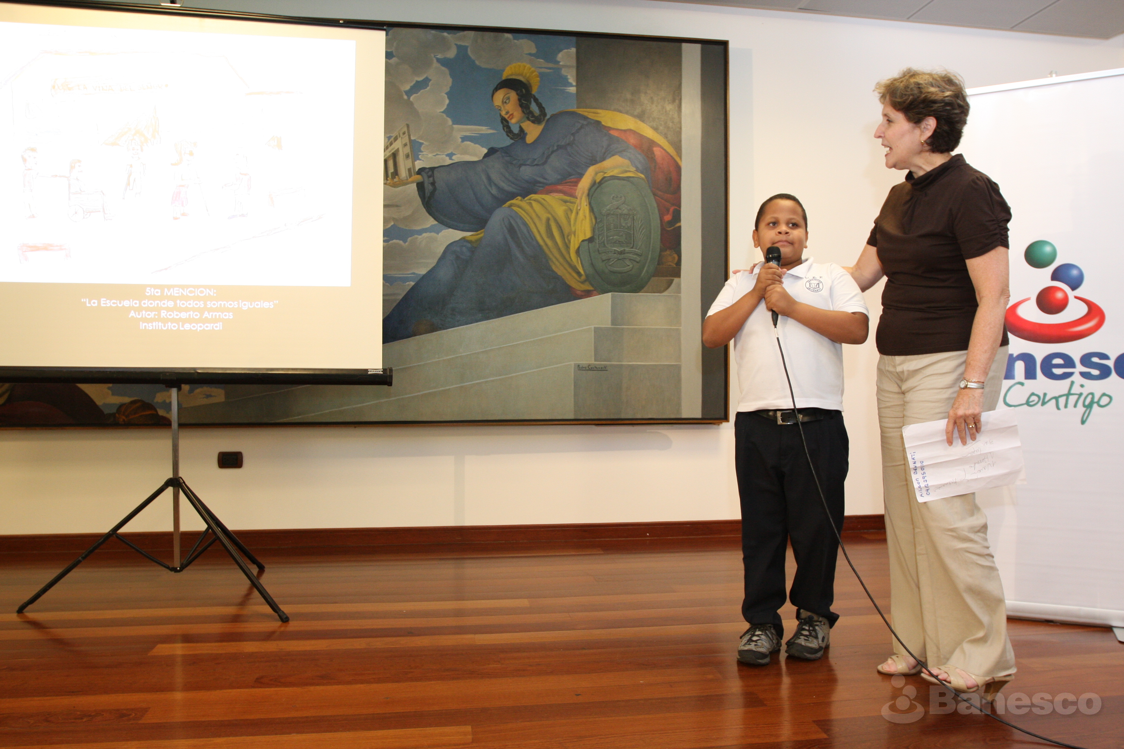 Roberto Armas del Colegio Leopardi, ganador de la 5ta mención del concurso que reconoce los dibujos de niños y adolescentes que demuestran cómo es posible la integración de niños especiales en colegios regulares. El Proyecto "Una escuela para todos" es uno de los proyectos desarrollado por la Fundación Paso a Paso en alianza con Banesco.