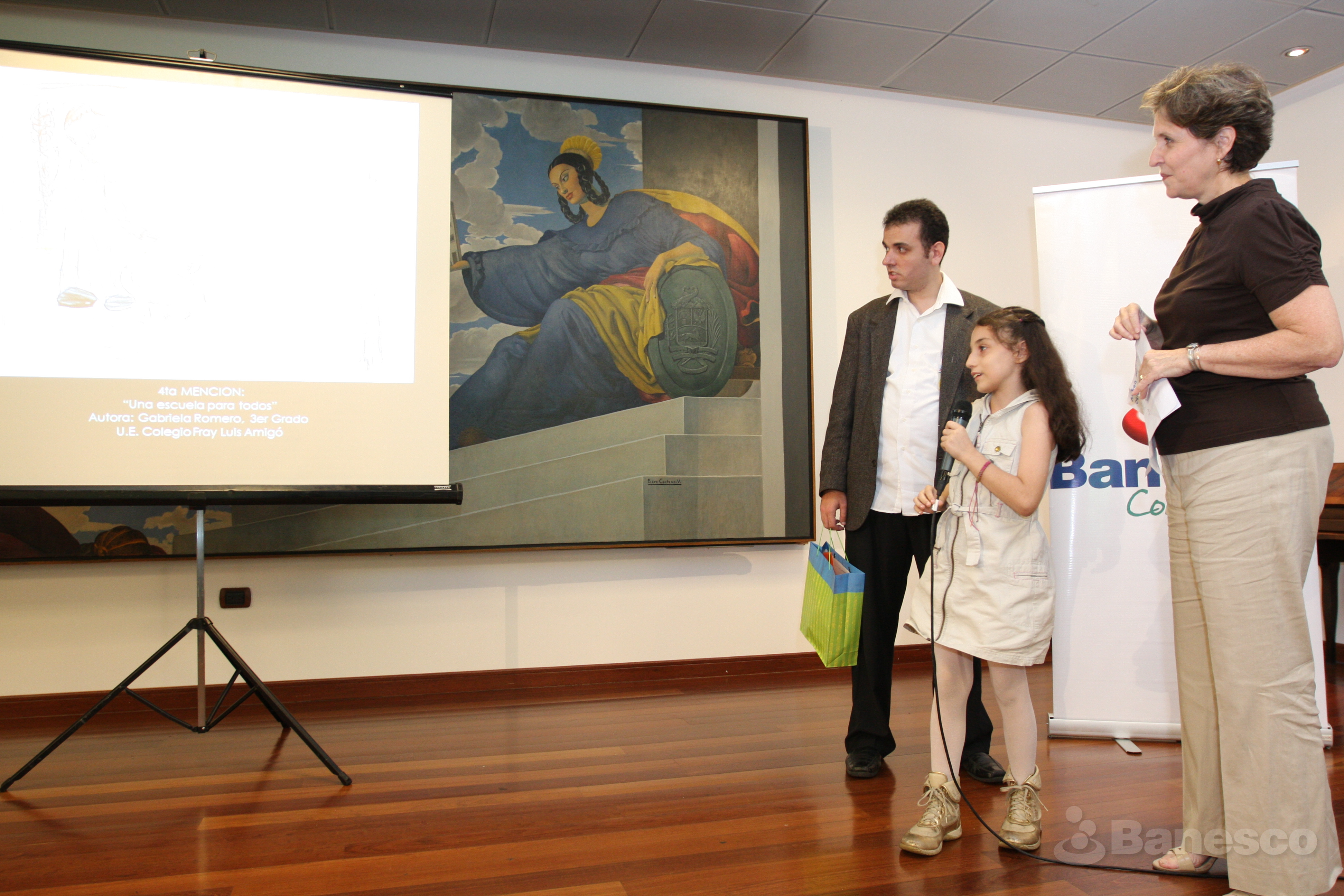 Gabriela Romero cursante del 3er grado de la U.E Fray Luis Amigó, fue la ganadora de la 4ta mención del concurso que reconoce los dibujos de niños y adolescentes que demuestran cómo es posible la integración de niños especiales en colegios regulares. "Una escuela para todos" es uno de los proyectos desarrollado por la Fundación Paso a Paso en alianza con Banesco.