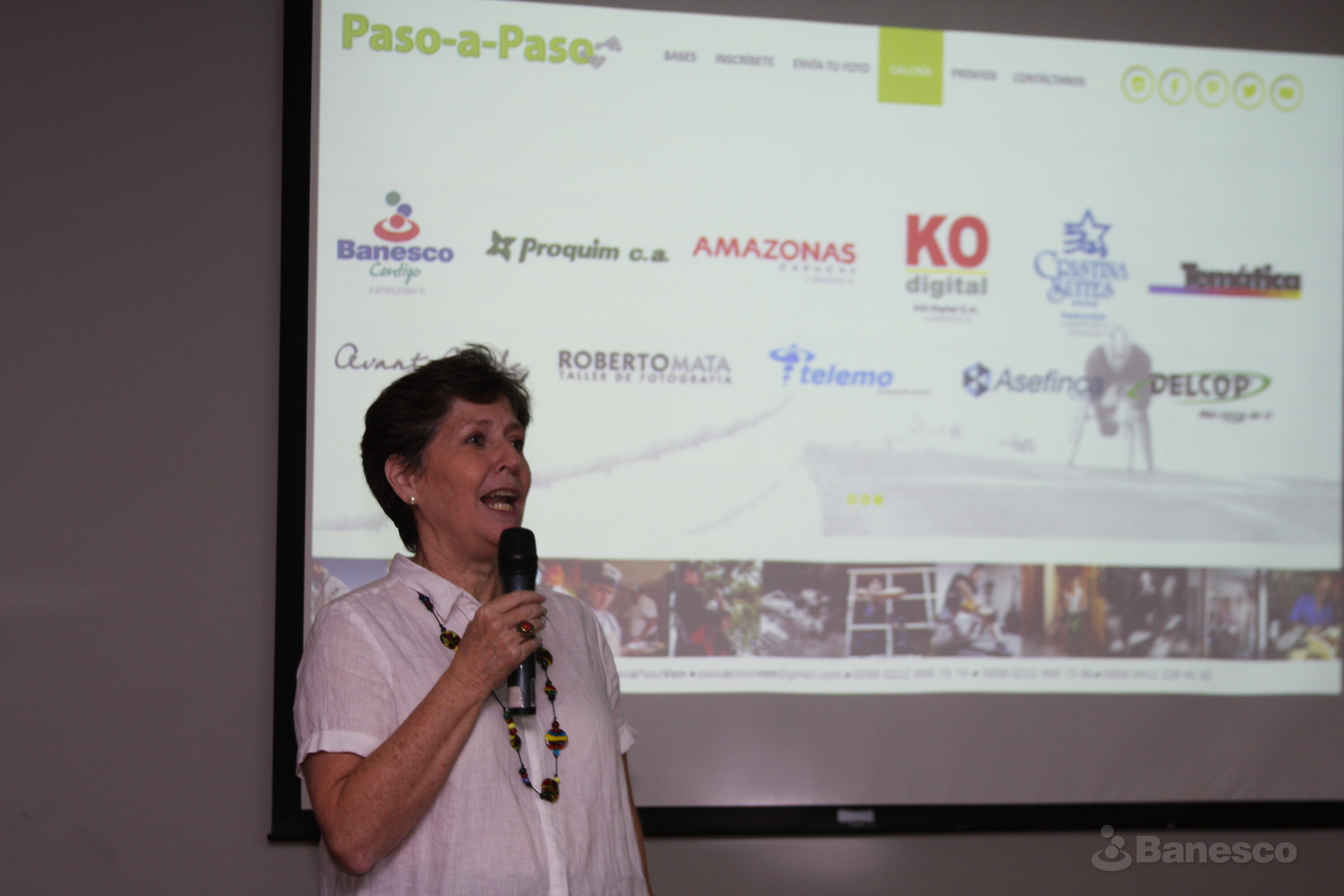 Angela Couret directora de la Fundación Paso a Paso da palabras en el evento de exposición fotográfica en la 12° edición del concurso fotográfico sobre discapacidad ¡Aquí Estamos 2017!.