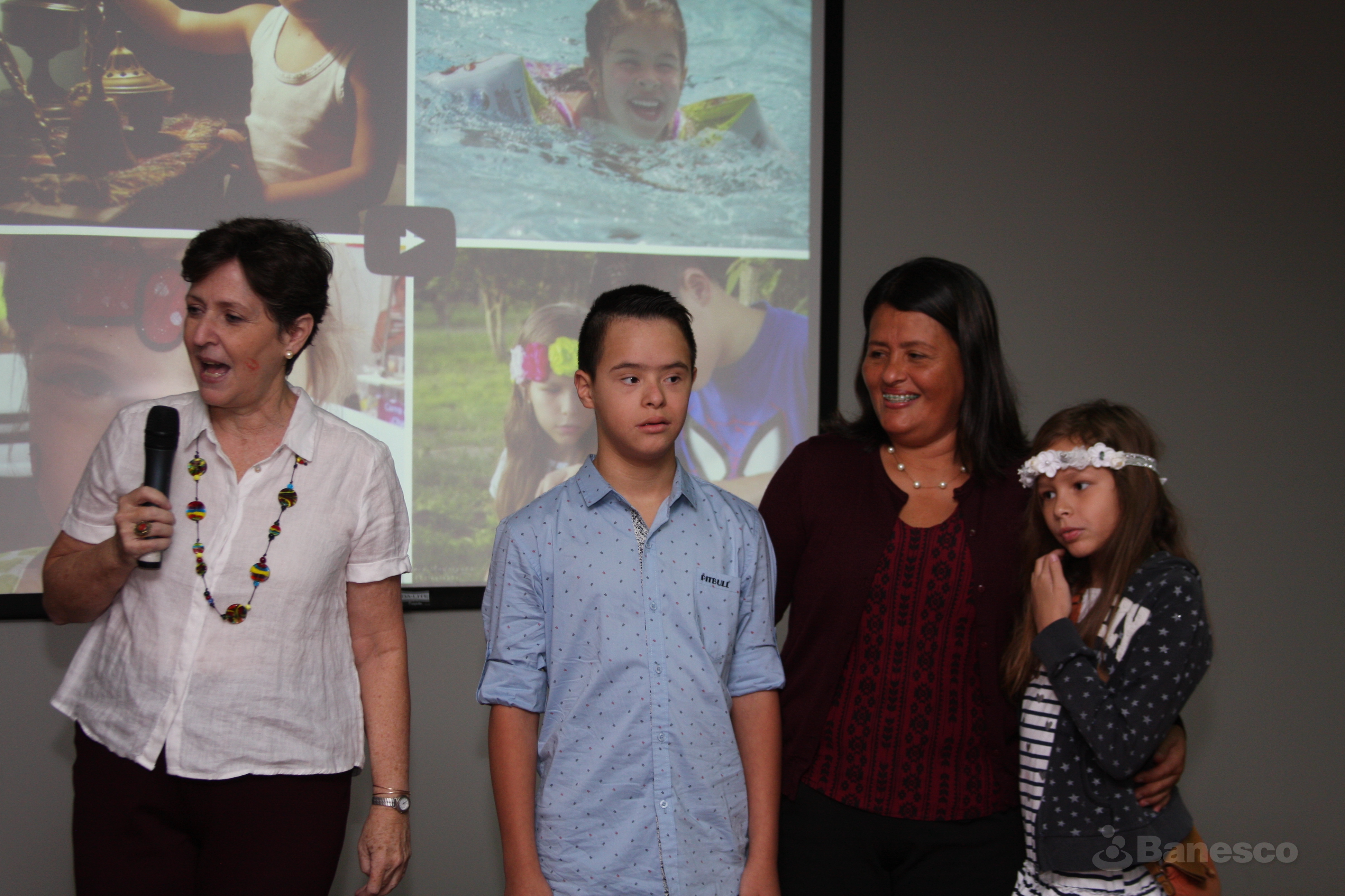 Angela Couret junto a participantes durante el evento de la exposición fotográfica realizada en las instalaciones de Ciudad Banesco.