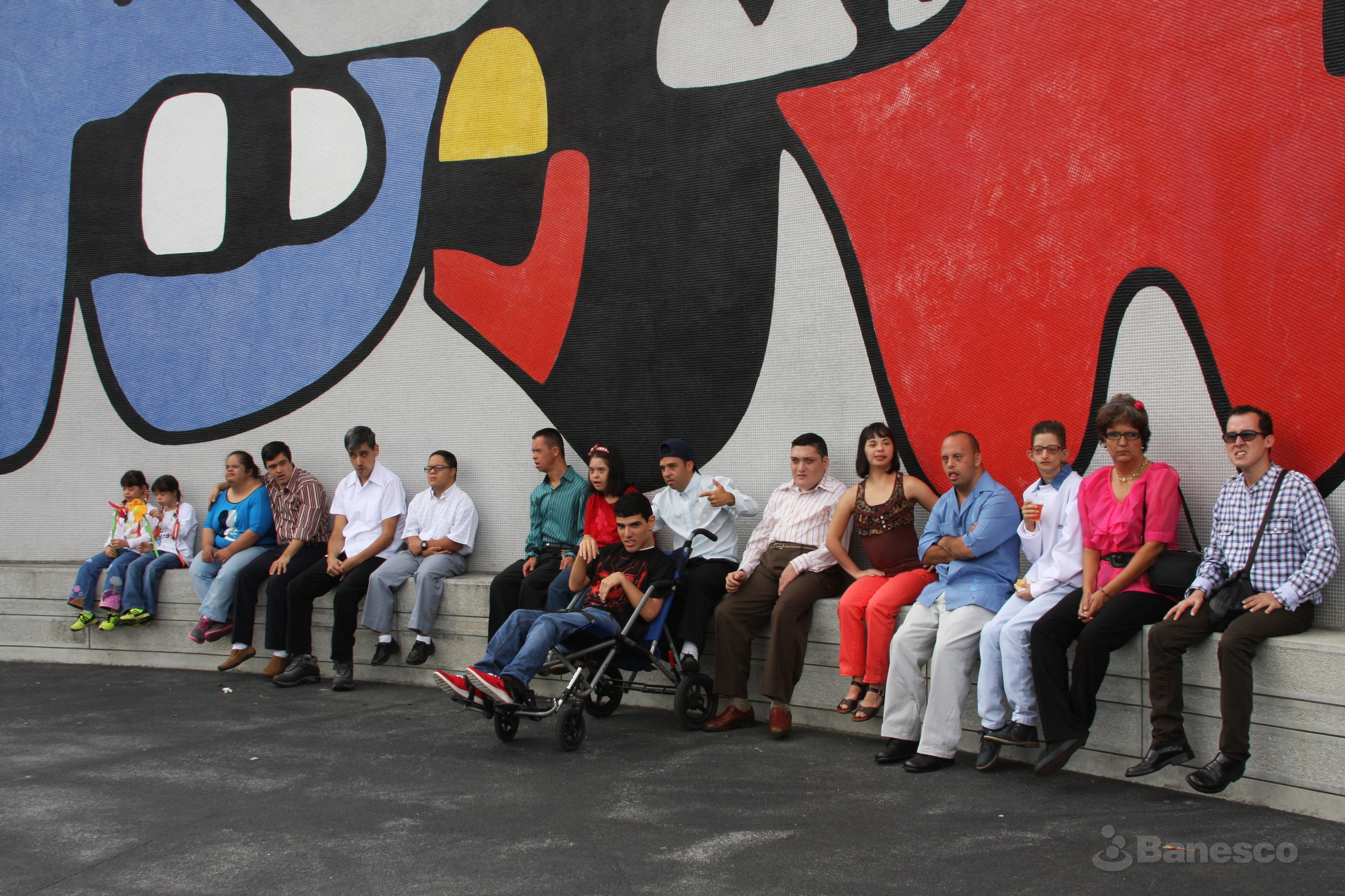 Foto grupal en la terraza de Ciudad Banesco de los participantes de la 12° edición del concurso fotográfico sobre discapacidad ¡Aquí Estamos 2017! .