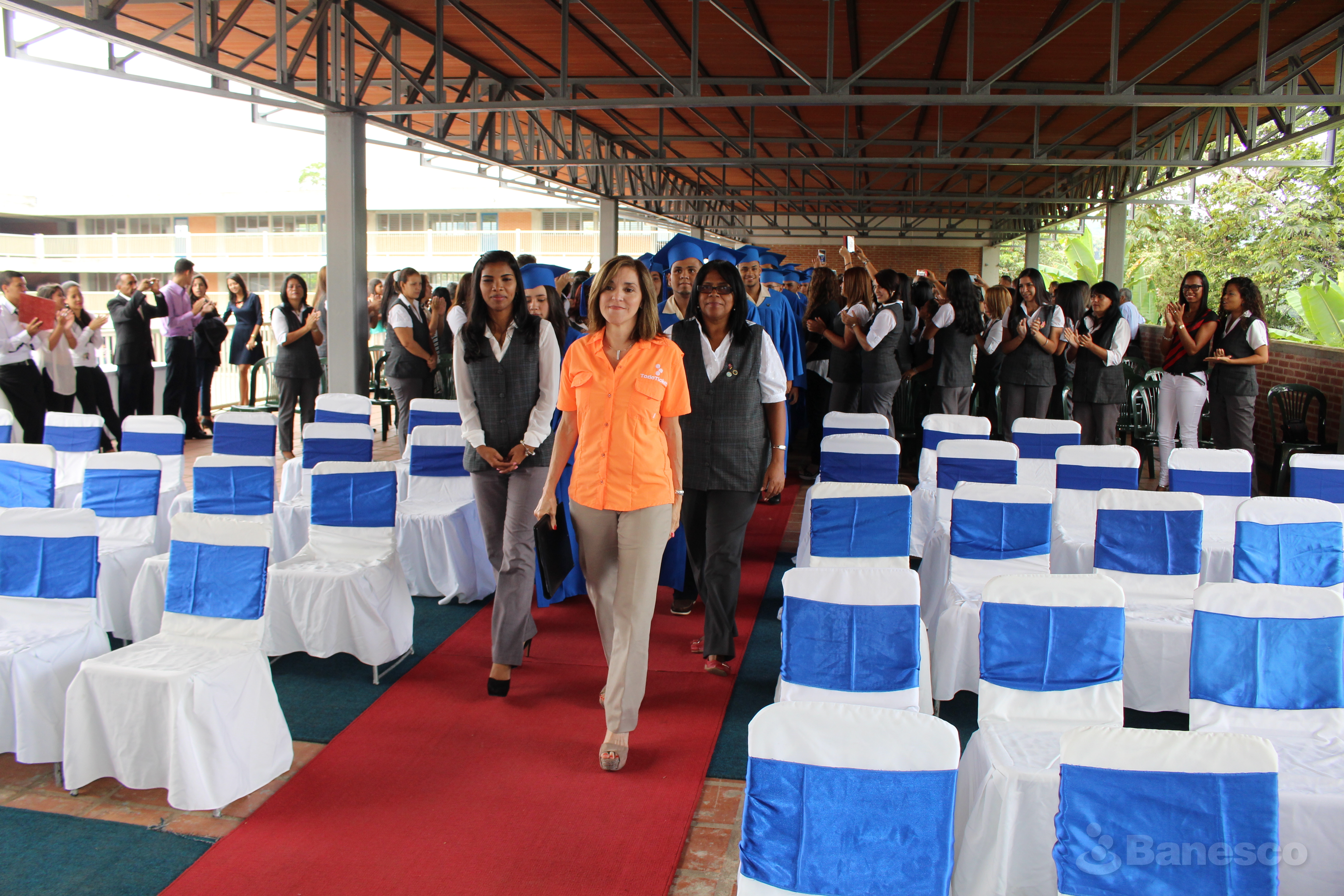 Entrada de Patricia Riera, gerente general de TodoTicket, madrina de los 66 graduados de la XIII promoción del Colegio Mano Amiga.