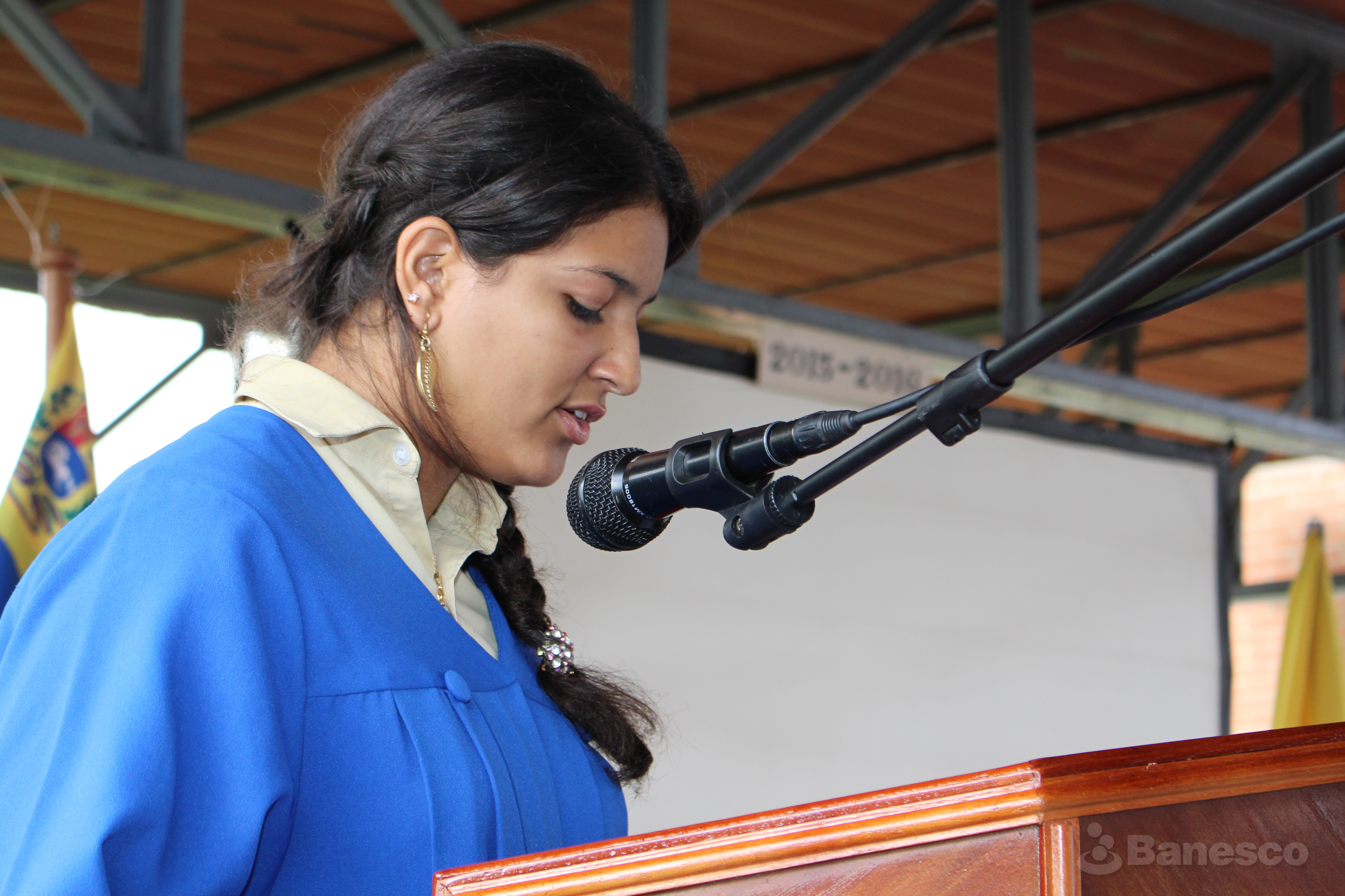 Bachiller da palabras de agradecimiento a la compañía de TodoTicket y al Colegio Mano Amiga durante la ceremonia de entrega de títulos.