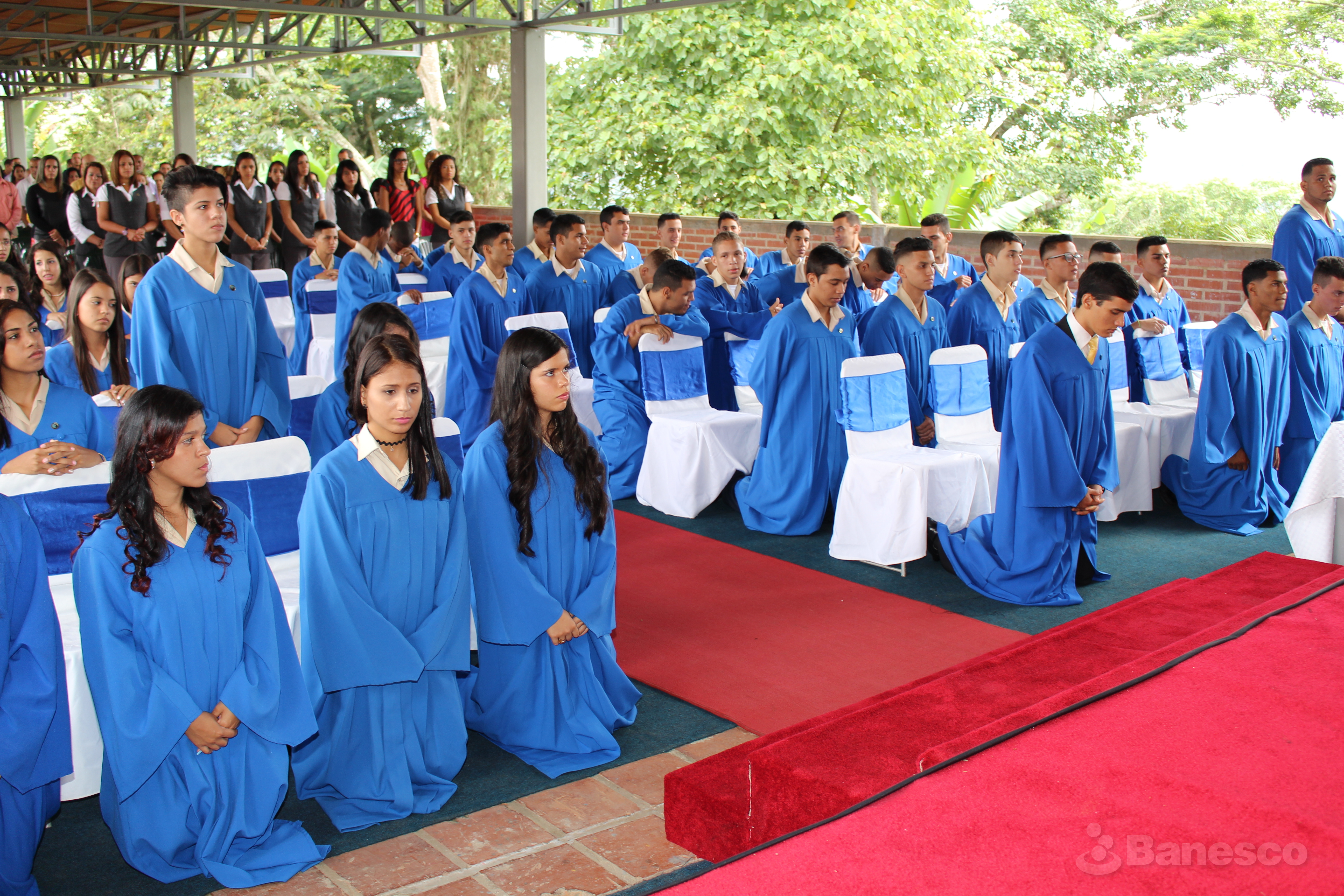 Estudiantes durante la misa realizada para bendecir el acto de graduación de la XIII promoción de bachilleres del colegio Mano Amiga.