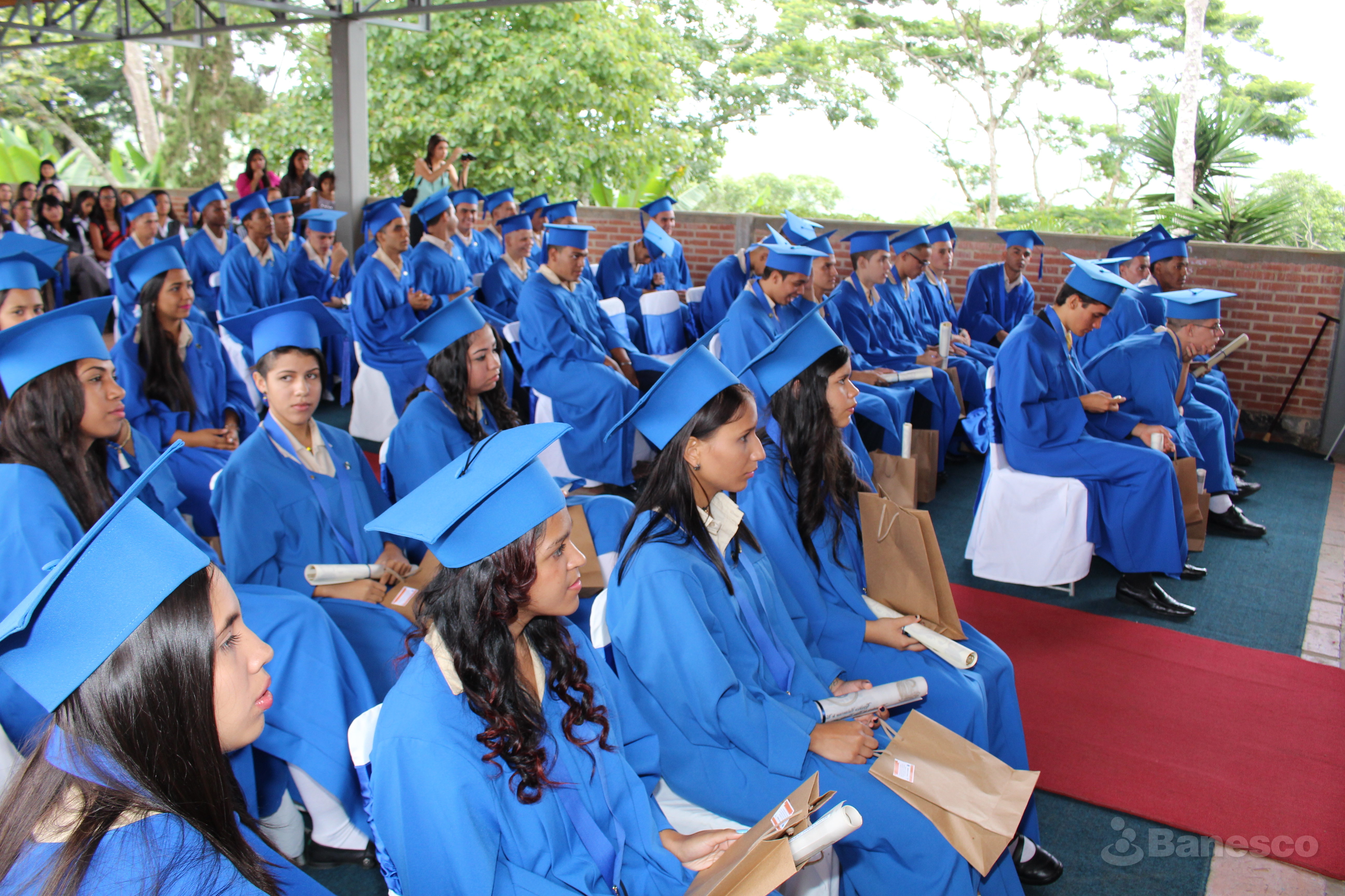 Alumnos de la XIII promoción del Colegio Mano Amiga, después de la entrega de títulos.