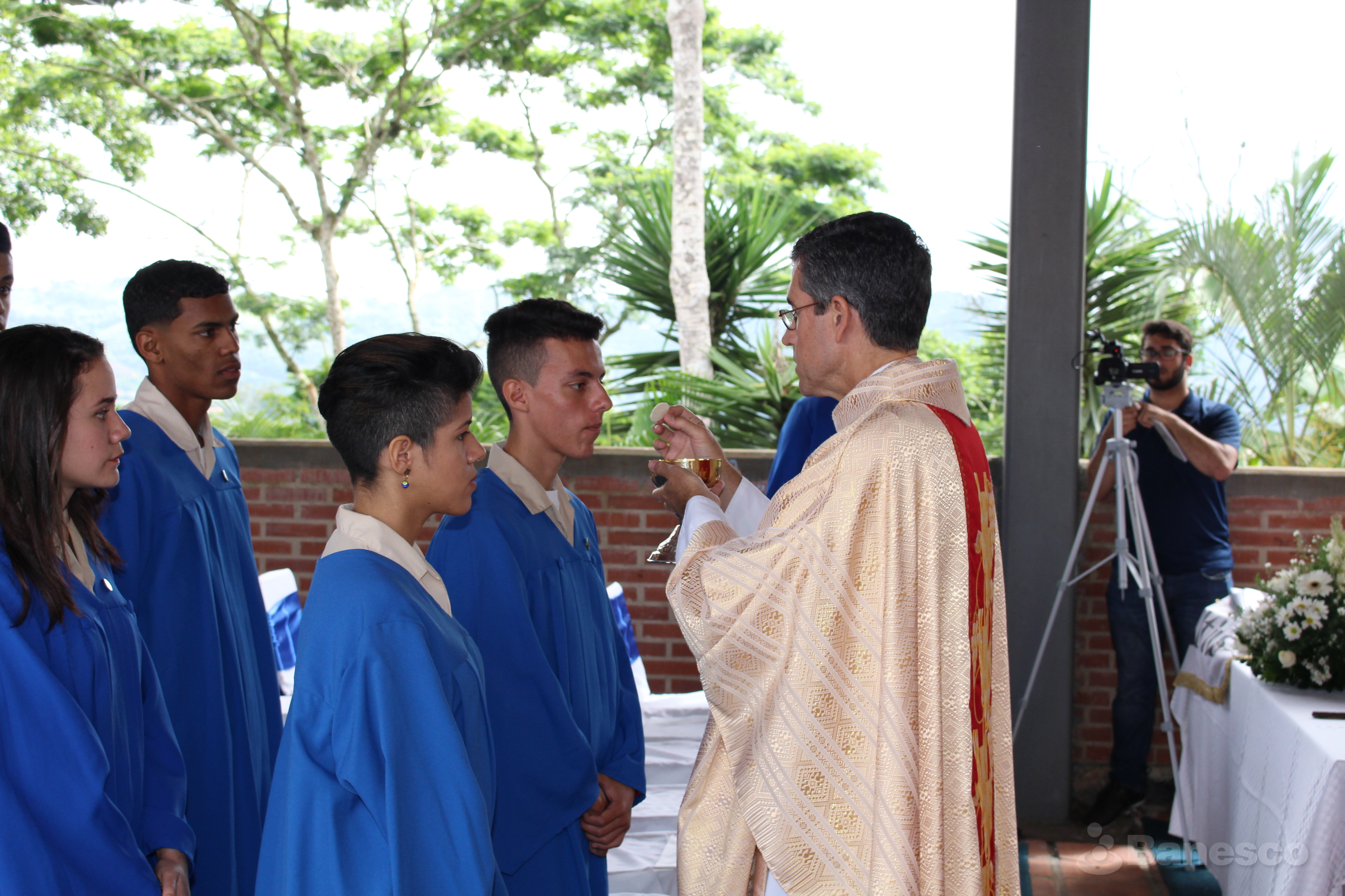 Momento de la comunión durante la misa realizada para bendecir la ceremonia de graduación de la XIII promoción 2015-2016 del Colegio Mano Amiga.