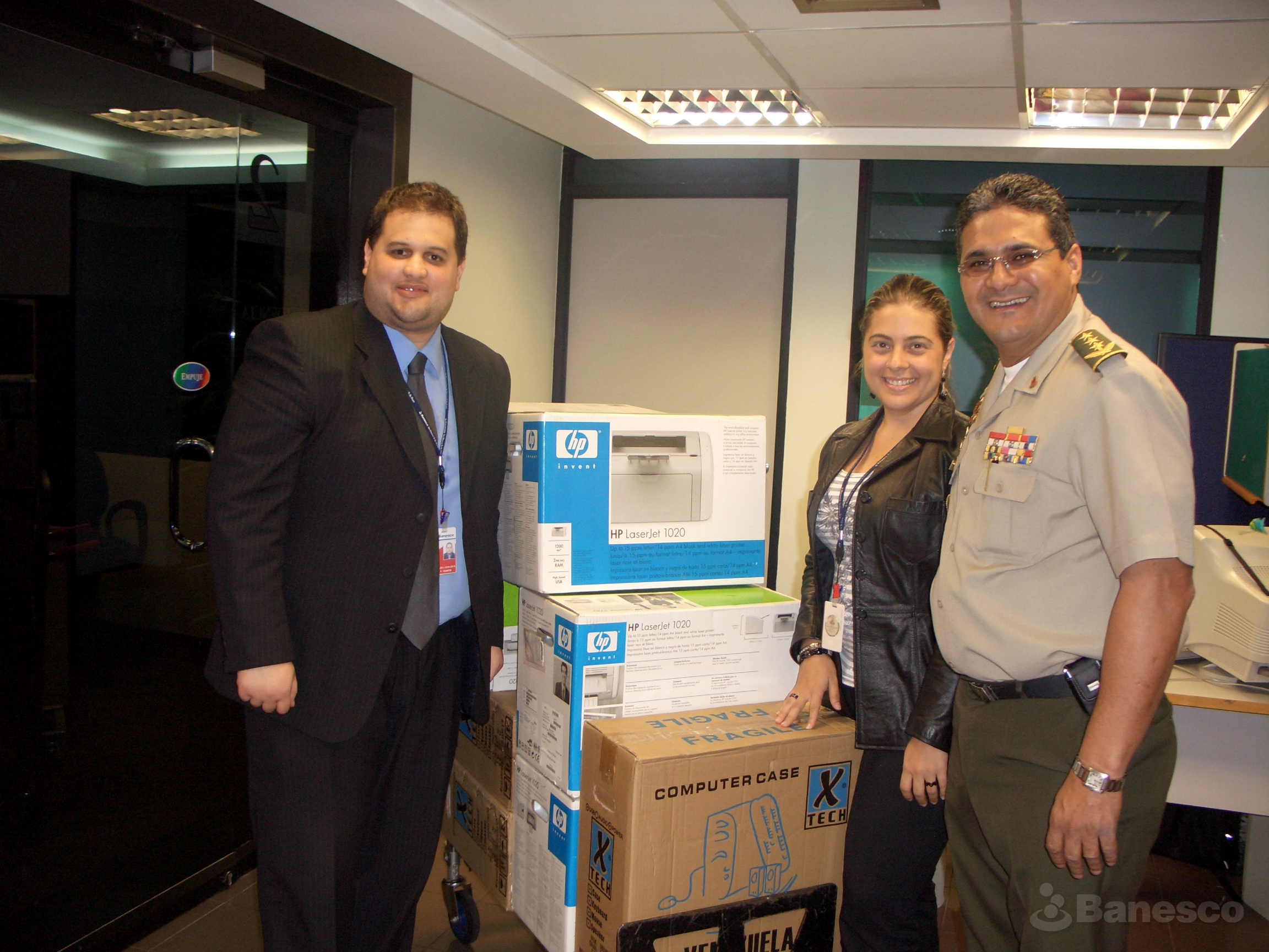 Representantes de la Dirección de Bienestar y Seguridad Social de la Guardia Nacional junto a personal de Banesco, durante la entrega del donativo de cuatro (4) computadoras realizado para el equipmiento de la institución.