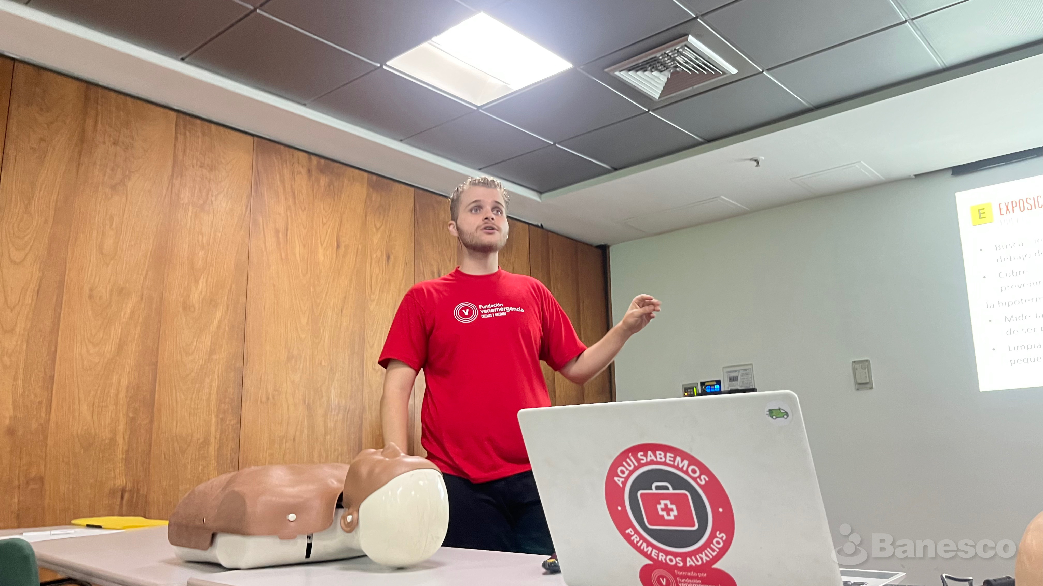 El Dr. Cristopher De Faria de la Fundación Venemergencia junto a su equipo dictaron un curso de Soporte Básico de Vida a los Socios y Aliados Sociales de Banesco en la Triada III de Ciudad Banesco.