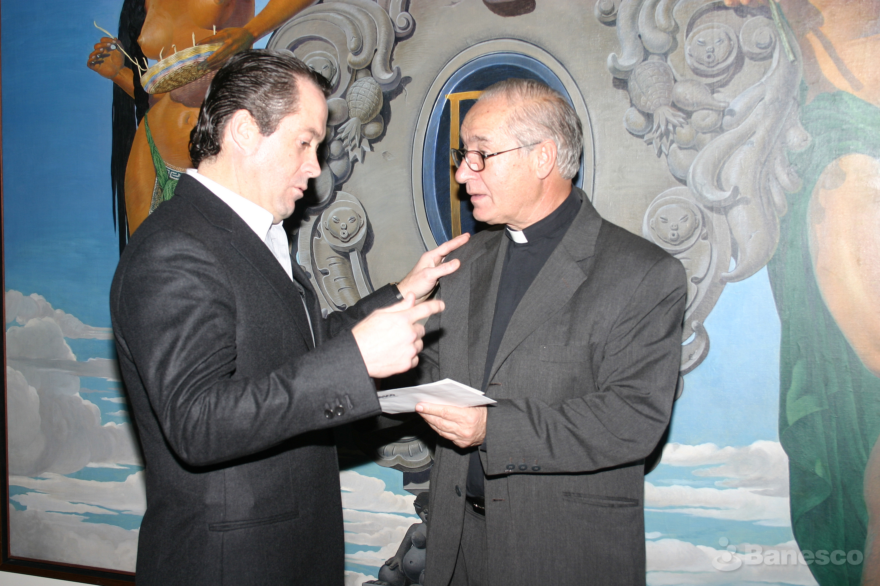 Luis Ugalde, rector de la Universidad Católica Andrés Bello (UCAB) junto a Juan Carlos Escotet, presidente ejecutivo de Banesco, en el marco de la entrega del donativo para la construcción de escuelas.