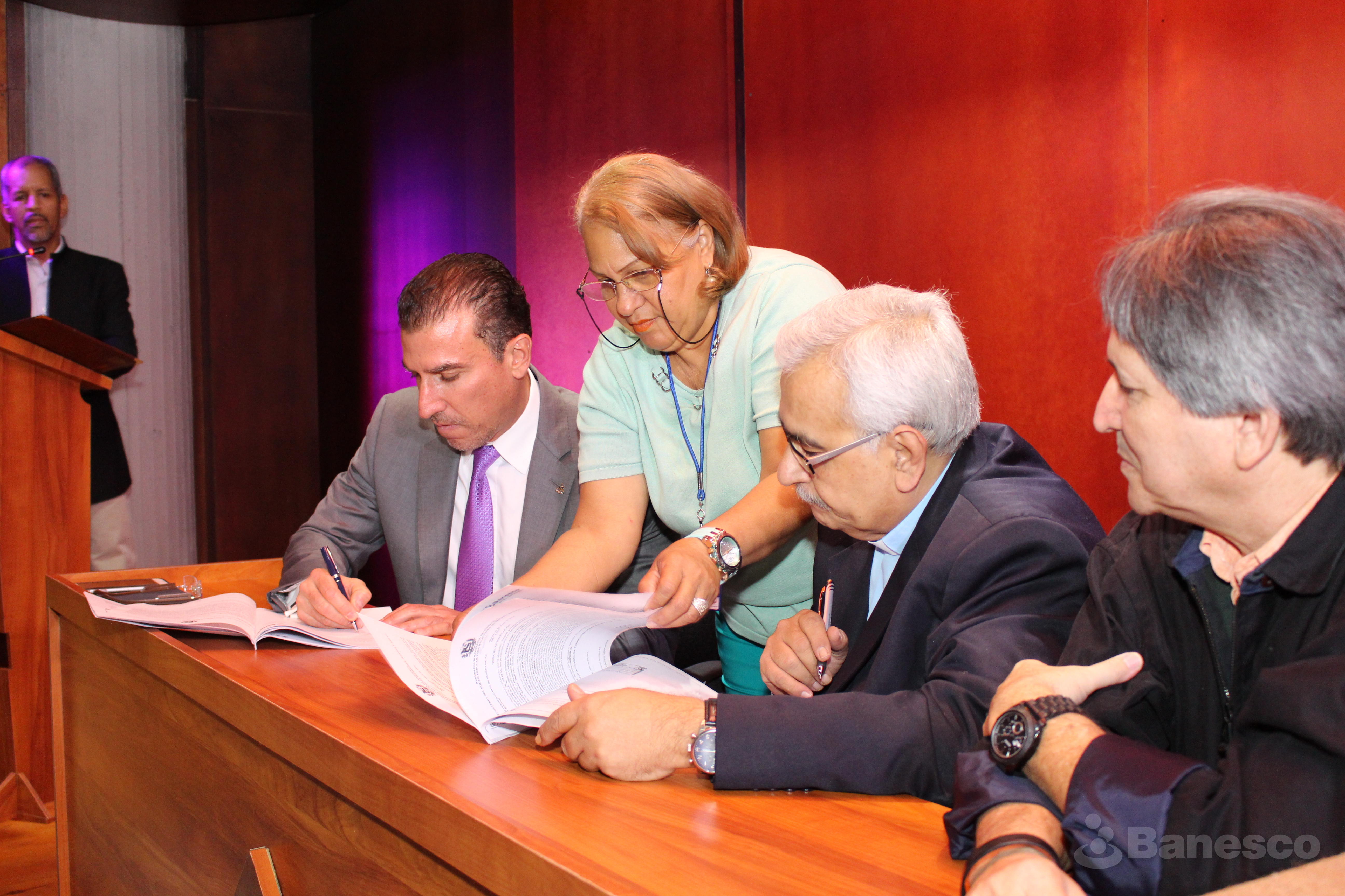 Firma por parte del presidente ejecutivo de Banesco Miguel Ángel Marcano y de las autoridades rectorales de la Universidad Católica Andrés Bello (UCAB) núcleo Ciudad Guayana.
