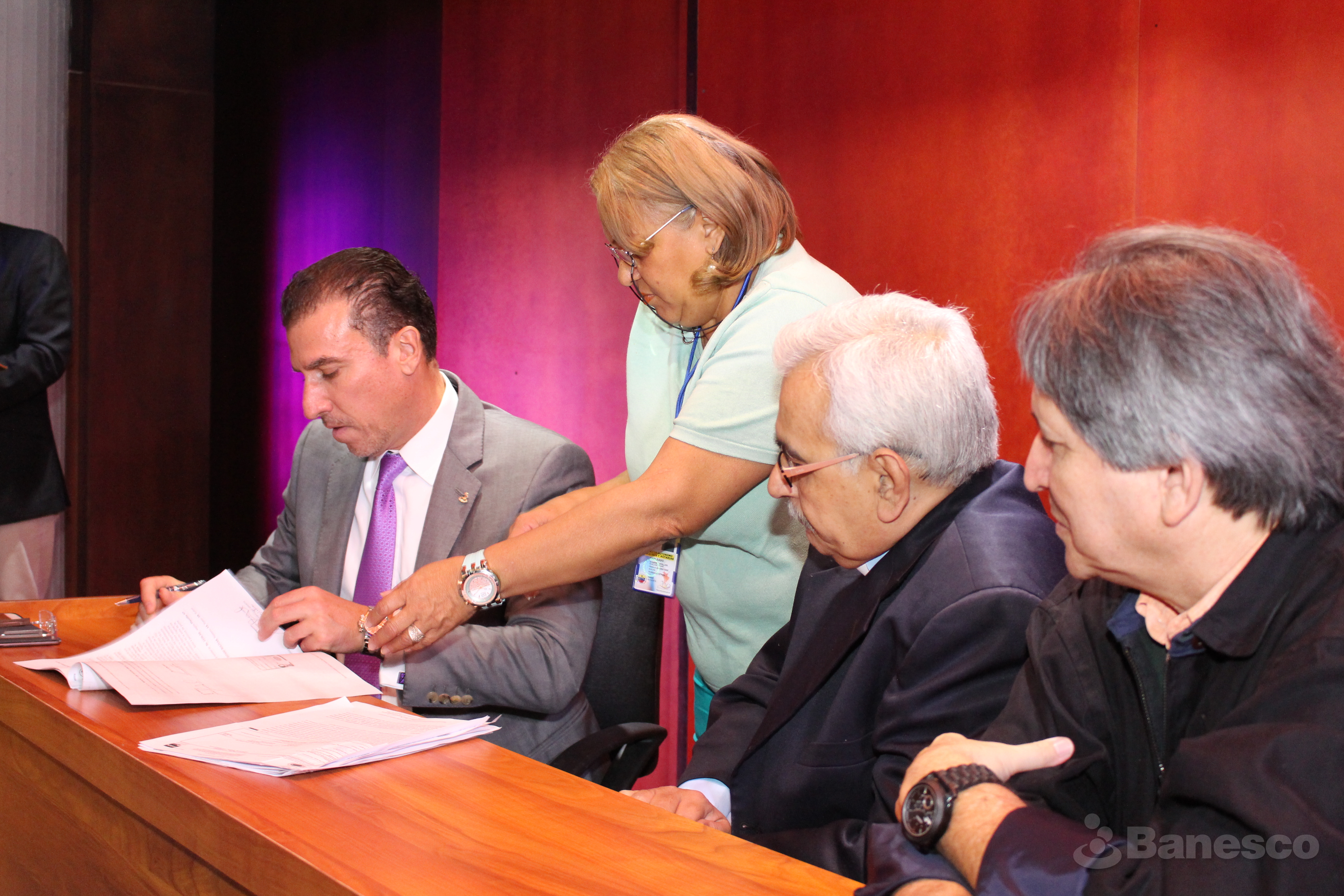 Firma por parte de Miguel Ángel Marcano, presidente ejecutivo de Banesco, durante el acto de entrega de “Becas Universitarias Banesco” para estudiantes del núcleo UCAB - Ciudad Guayana.