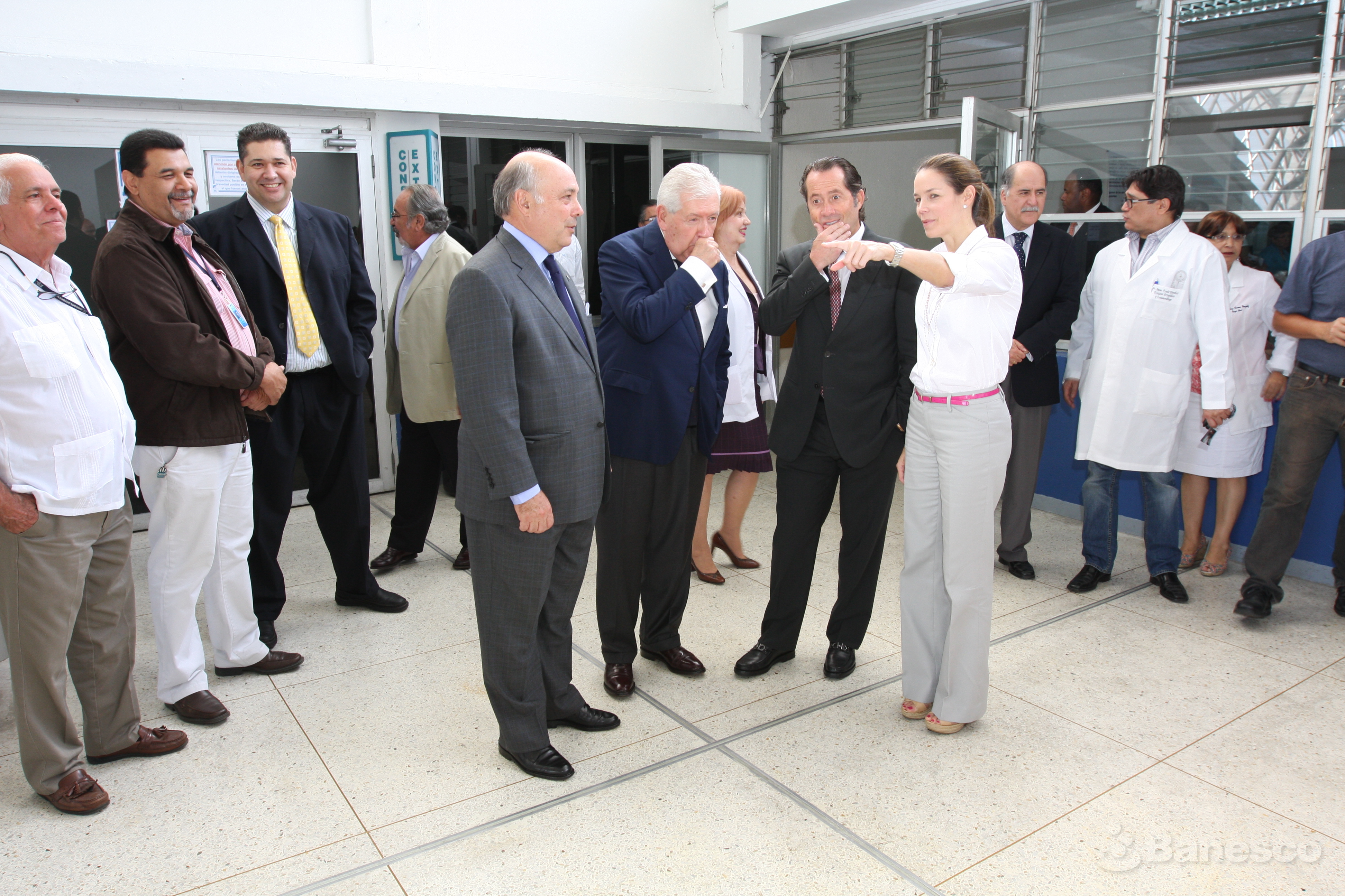 Andreína Vogeler Mendoza de Pérez, directora ejecutiva de La Fundación Venezolana contra la Parálisis Infantil (FVCLPI) conversa con Juan Carlos Escotet Rodríguez, presidente de Banesco, durante la inauguración de la sala de espera del Hospital Ortopédico Infantil de Caracas.