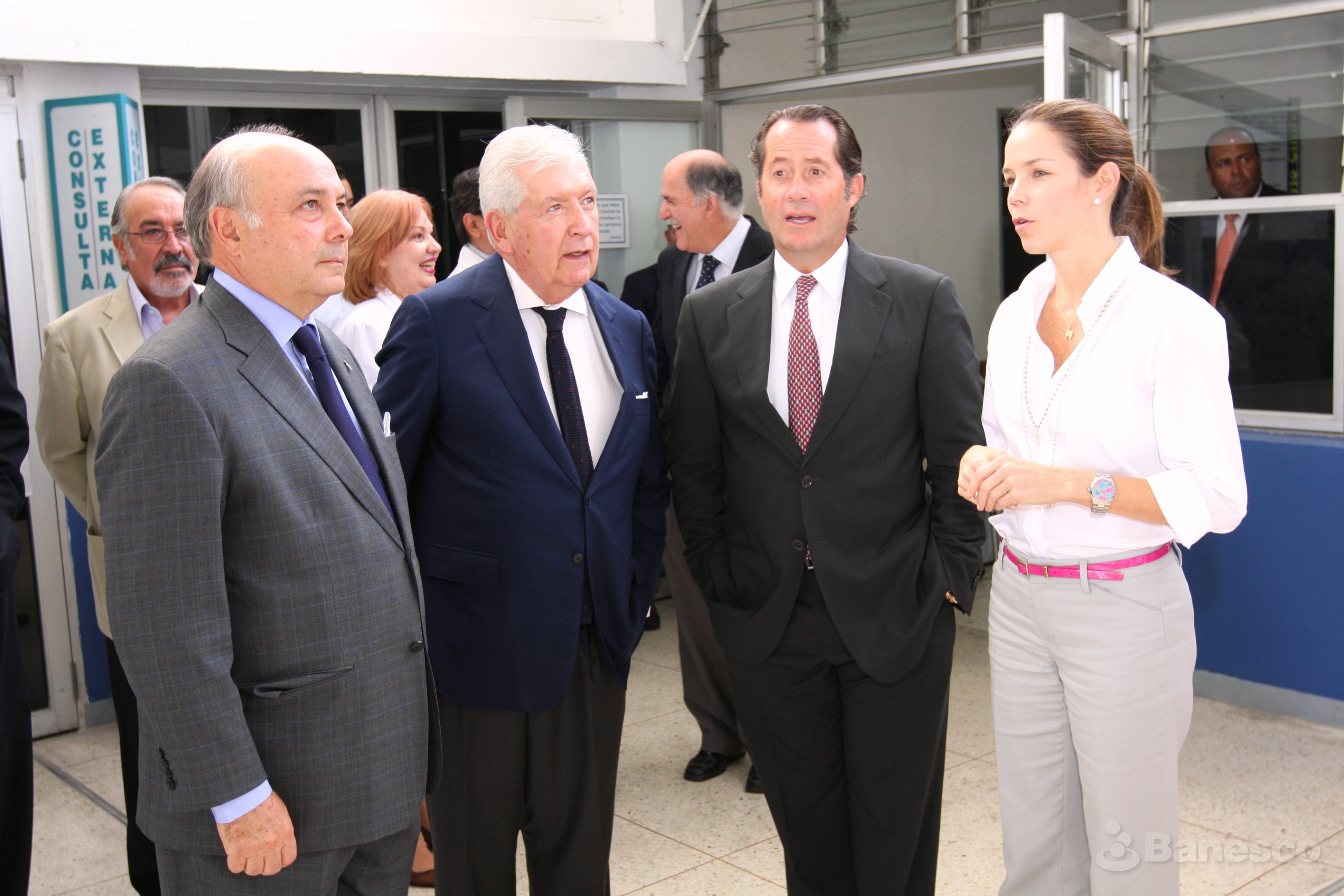 Eugenio Mendoza, Dr. Pablo Pulido, Juan Carlos Escotet y Andreína Vogeler el día de la inauguración de la sala de espera del Hospital Ortopédico Infantil de Caracas.