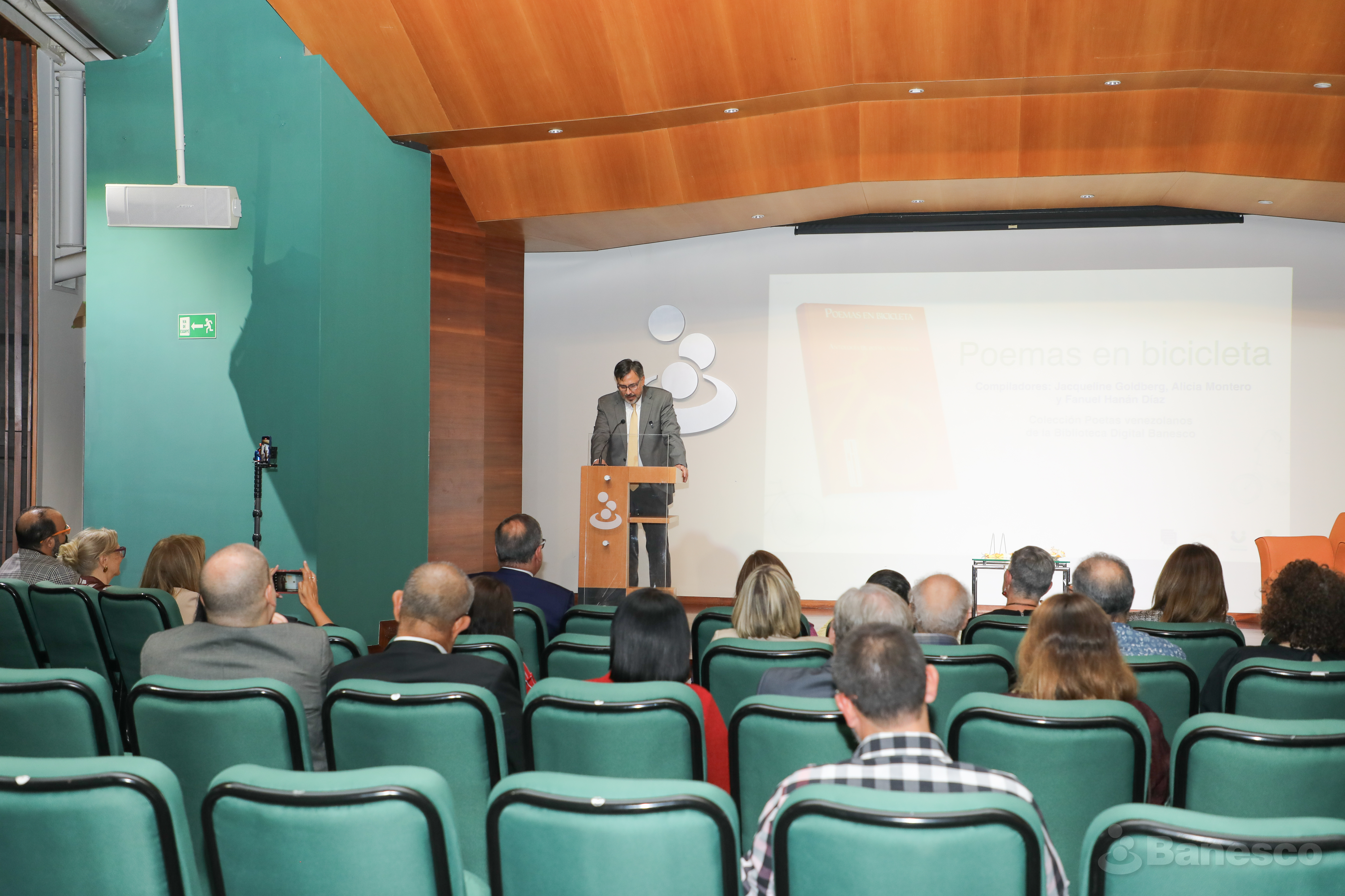 Palabras de Marlo Ovalles presidente de Fundación La Poeteca, durante la presentación del libro "Poemas en bicicleta. Antología de poesía venezolana", evento realizado en las instalaciones de Ciudad Banesco.