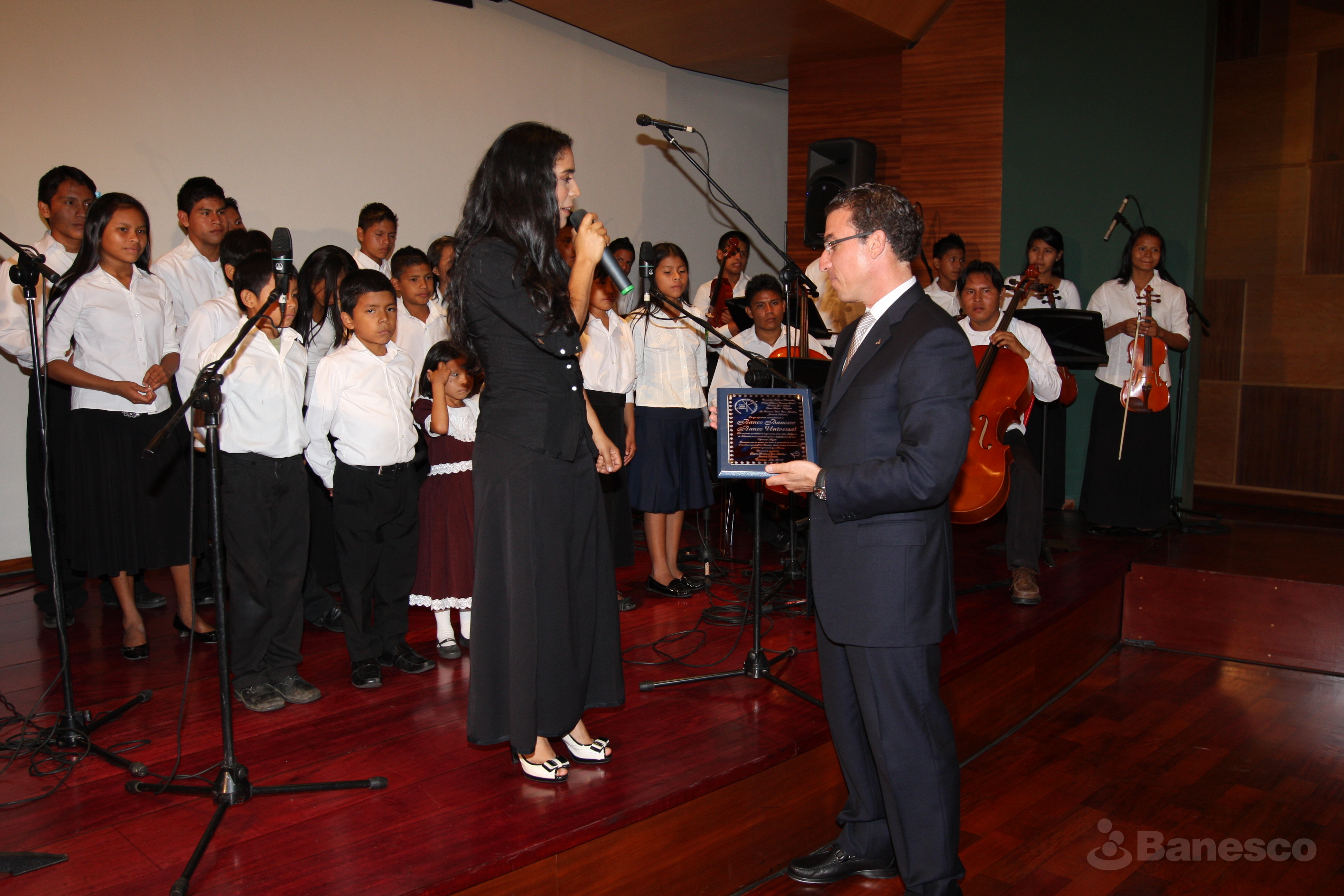 Palabras de Raquel Acevedo, directora de la Orquesta y Coro Infantil y Juvenil Kanaima dedicadas a Miguel Ángel Marcano, presidente ejecutivo de Banesco durante la presentación del concierto de los niños pemones.