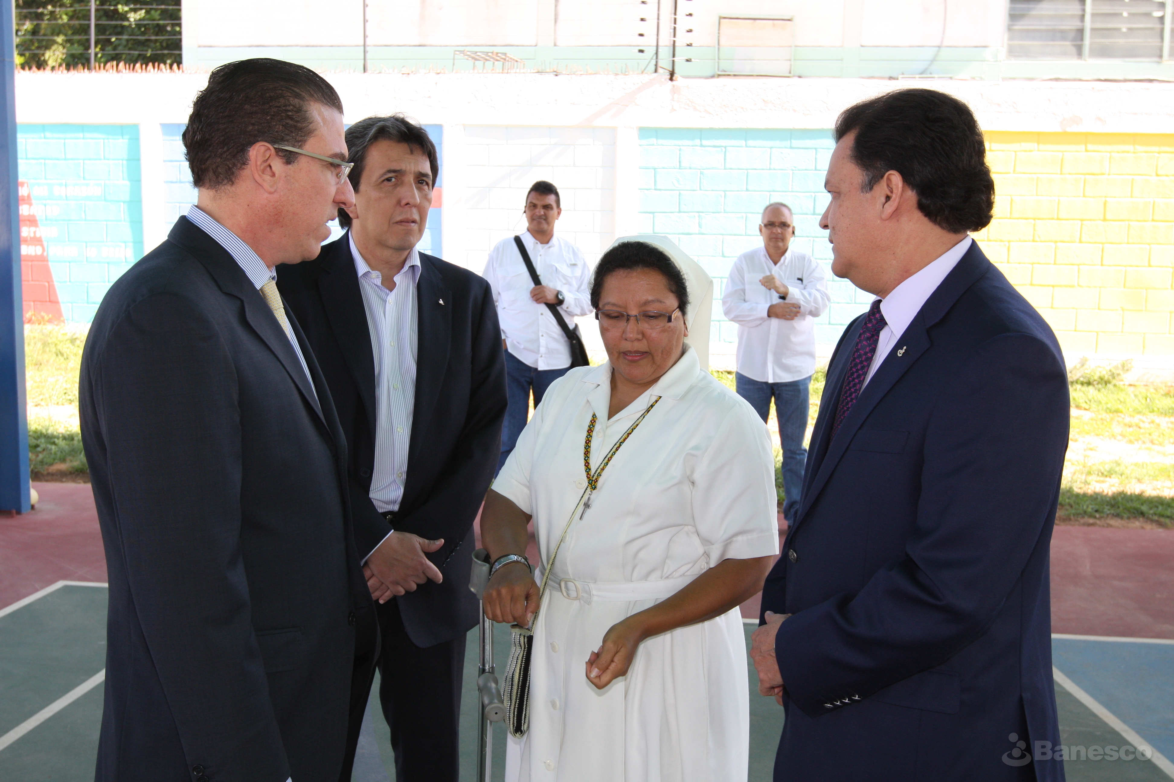 Miguel Ángel Marcano, presidente ejecutivo de Banesco junto a la hermana Carmen Cecilia Mora, durante la visita realizada a la Escuela Básica Popular Laura Vicuña ubicada en el estado Carabobo.