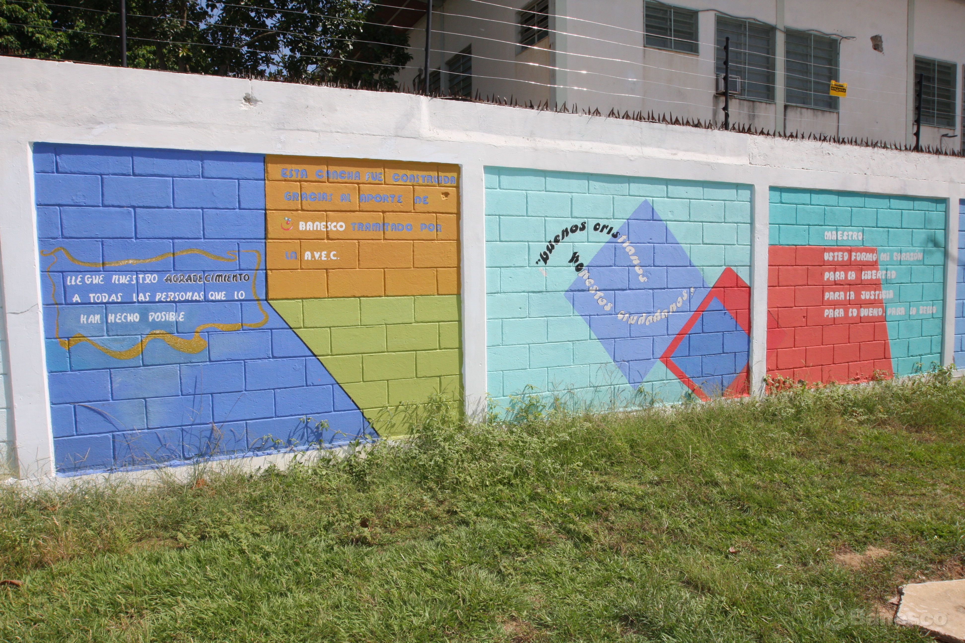 Mural de agradecimiento a Banesco por la asignación de recursos otorgados para la construcción de una cancha de usos múltiples para el beneficio de 262 alumnos que estudian en la Escuela Básica Popular Laura Vicuña.