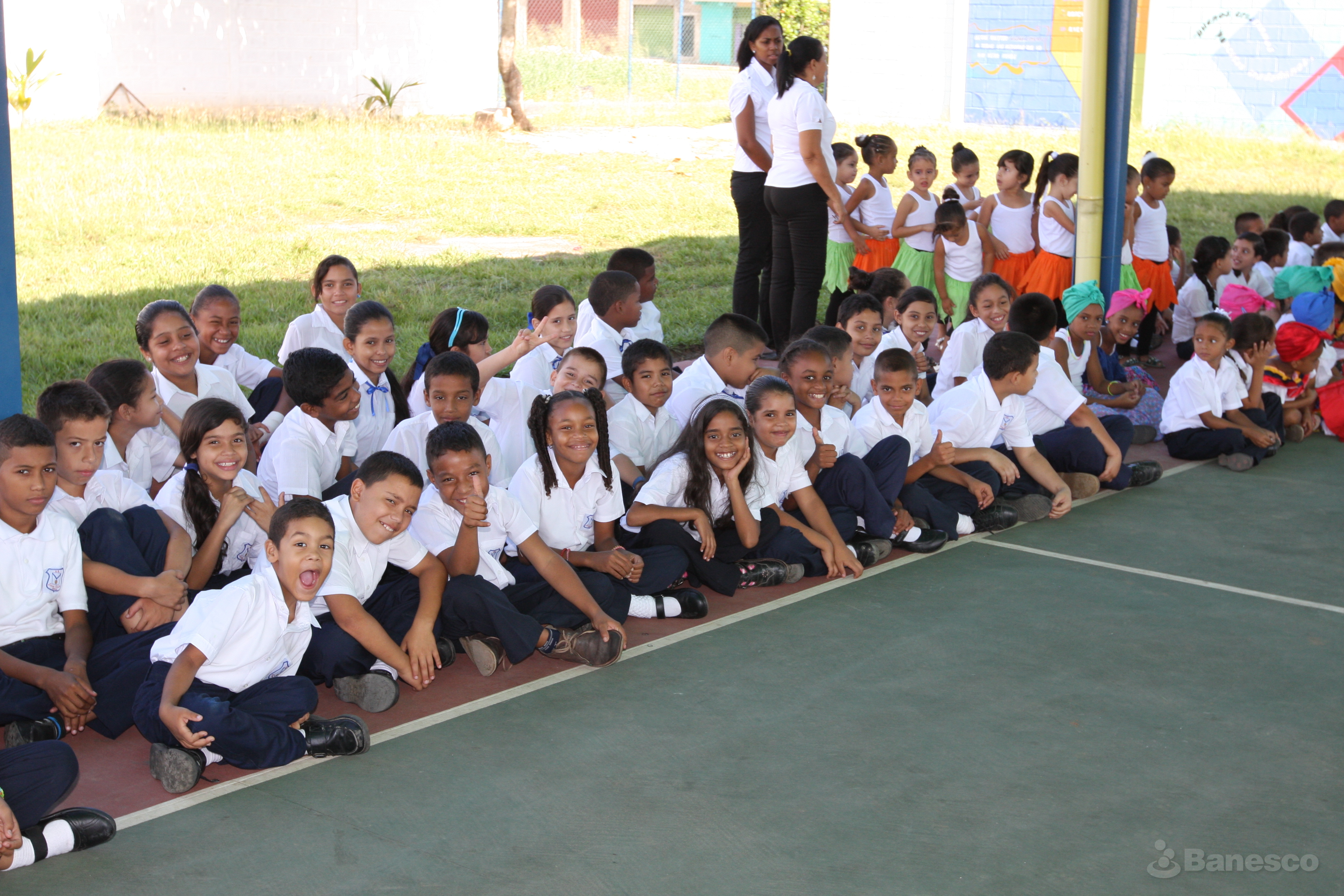 Alumnos de la Escuela Básica Laura Vicuña ubicada en Valencia, a la espera de la visita de la Junta Directiva de Banesco.
