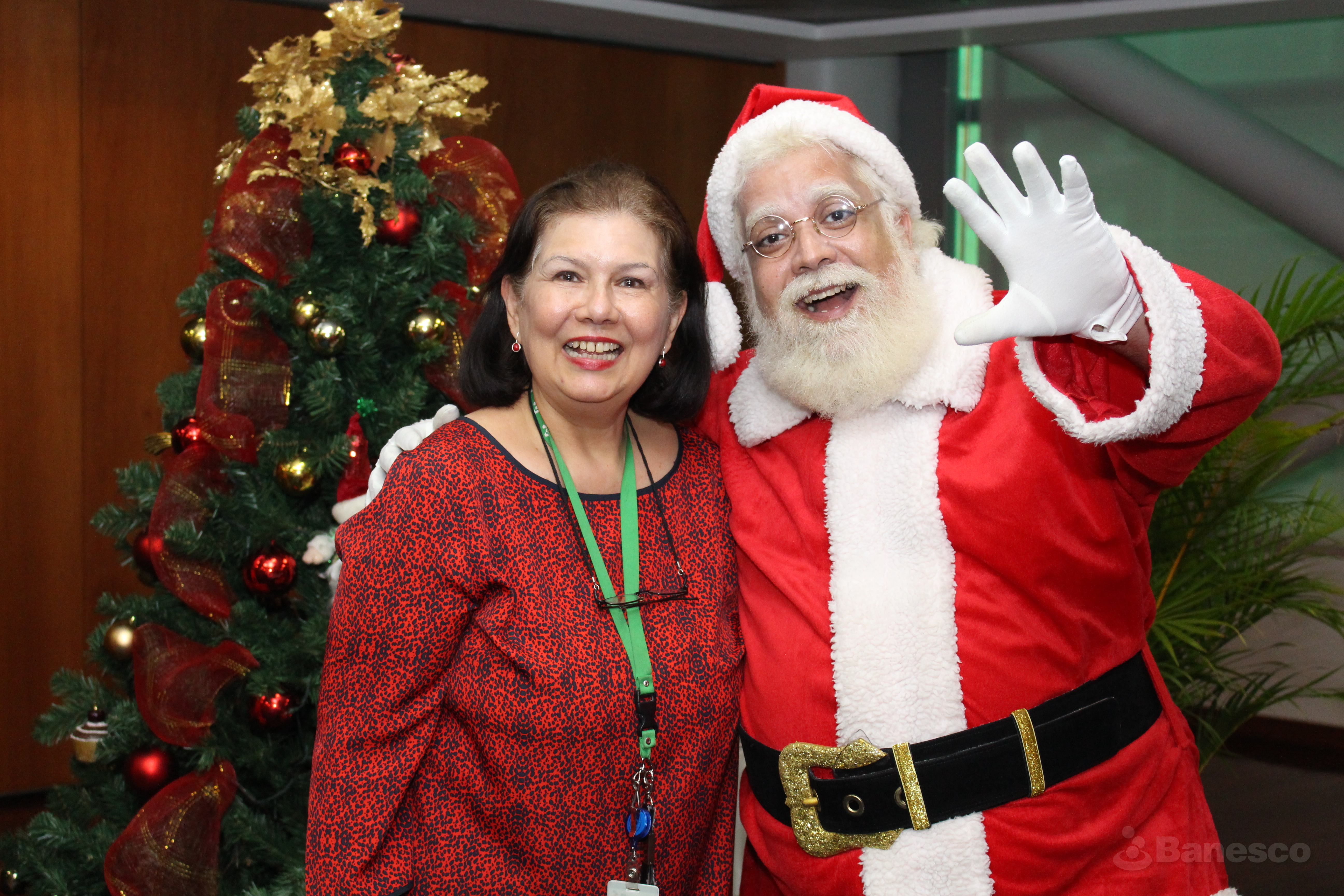 Belén López junto a San Nicolás durante la premiación del concurso "Pinta la Navidad con Banesco" una iniciativa del banco en el que los pequeños de la casa dibujaron lo que significa para ellos la época decembrina.