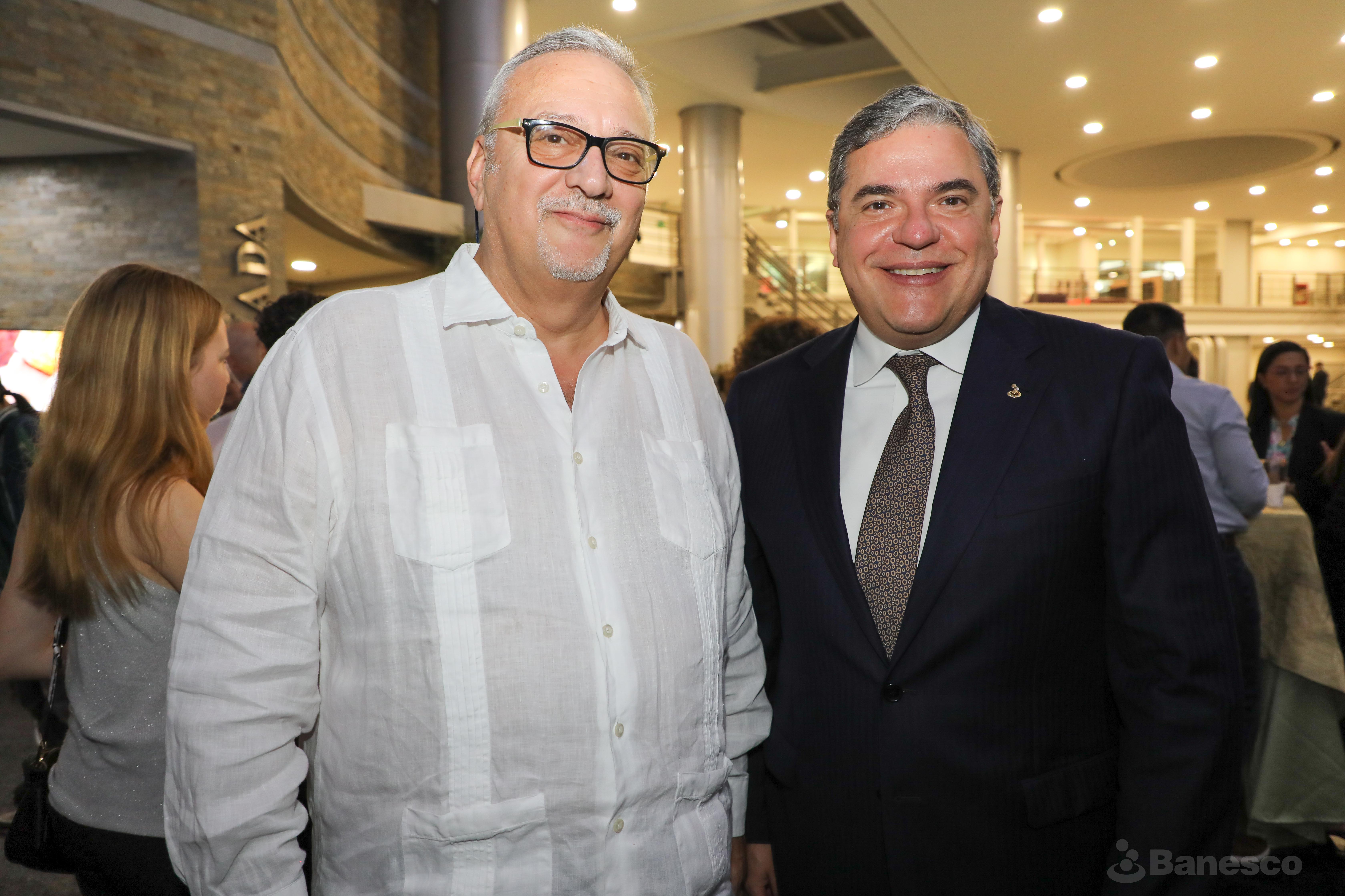 Sergio Dahbar destacado periodista y editor junto al presidente de la Junta Directiva Marco Tulio Ortega durante el bautizo del libro "Panaderías Caraqueñas" realizado en las instalaciones de Ciudad Banesco.