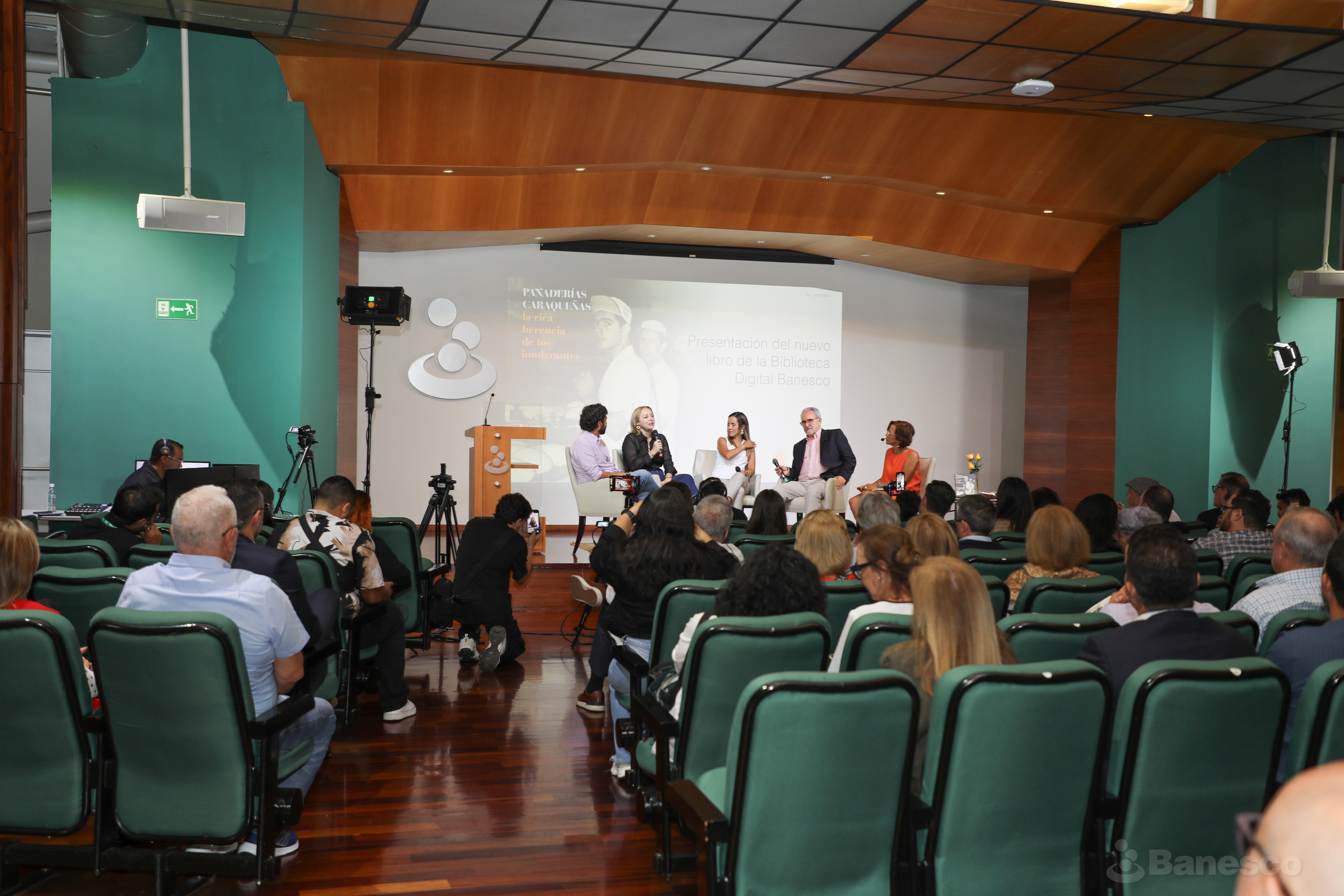 Laura Helena Castillo, cronista del libro "Panaderías Caraqueñas", dando unas emotivas palabras durante la presentación realizada en el auditorio Fernando Crespo Suñer de Ciudad Banesco.