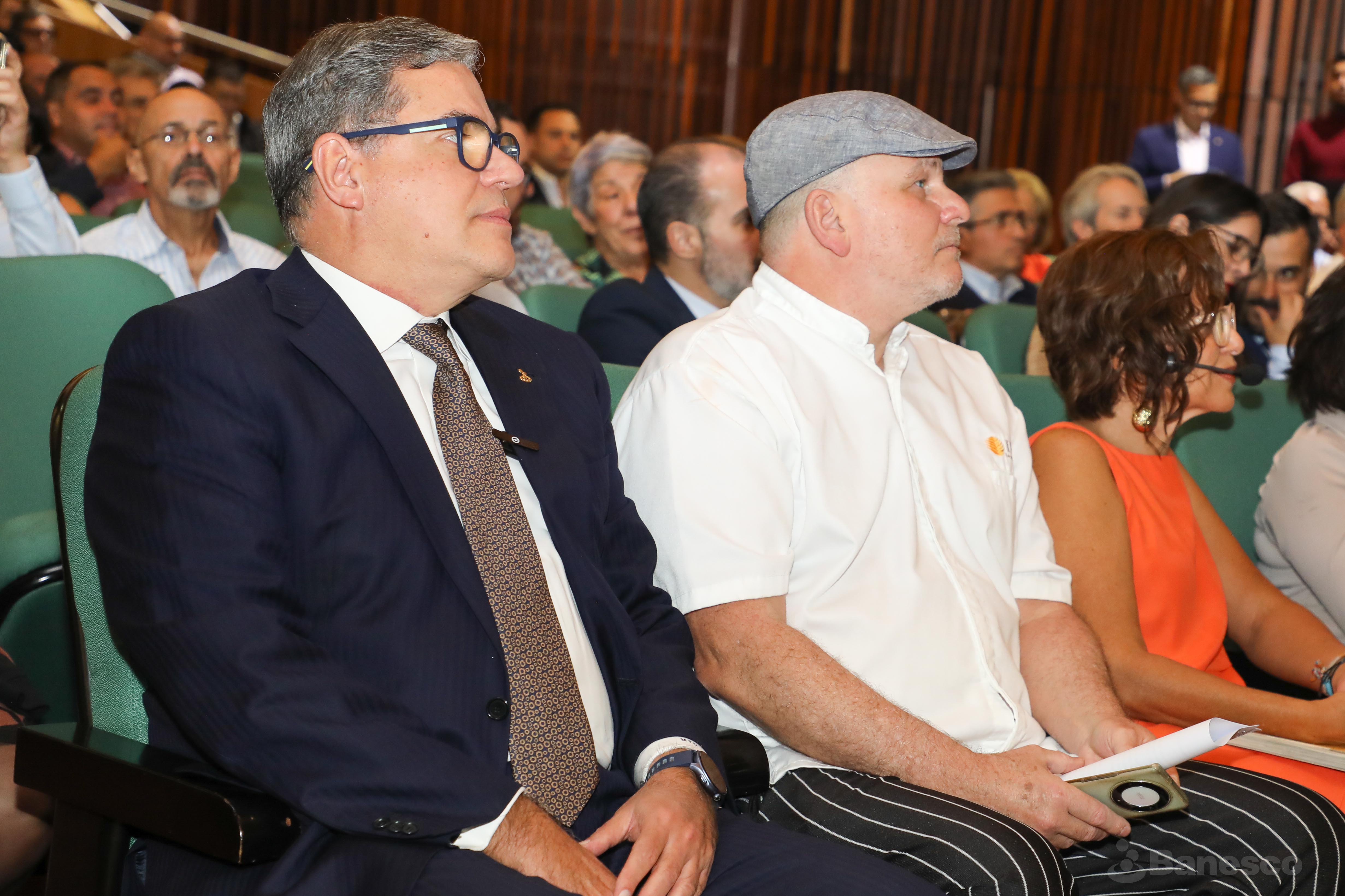 Marco Ortega, presidente de la Junta Directiva de Banesco junto a Juan Carlos Bruzual, director de Instituto Europeo del Pan (IEPAN) durante el bautizo del libro "Panaderías Caraqueñas" realizado en el auditorio Fernando Crespo Suñer de Ciudad Banesco.