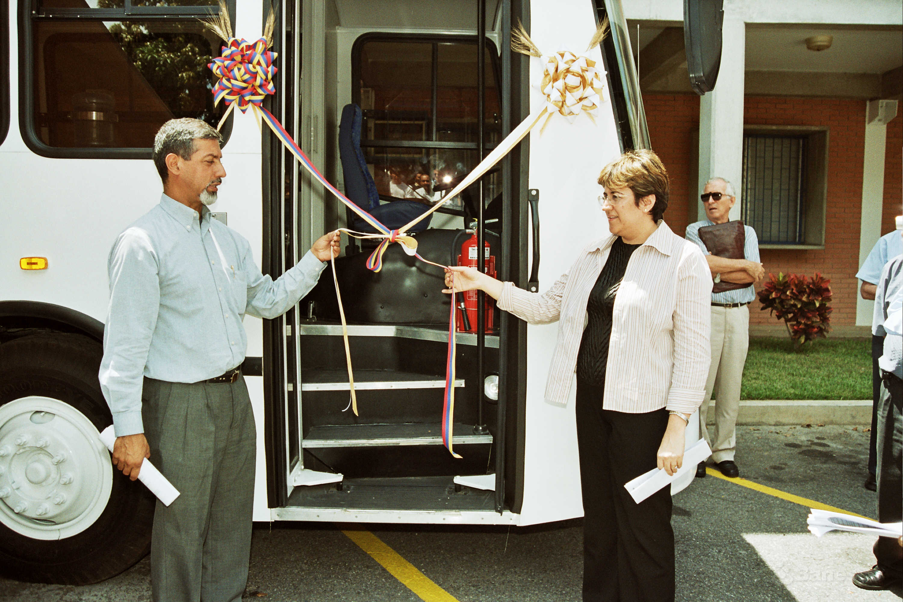 El sacerdote Jonny Reyes de La Asociación Civil Red de Casas Don Bosco durante el acto de inauguración de la unidad móvil BoscoBus, una iniciativa que cuenta con el apoyo del BID, Fonvis y Banesco.