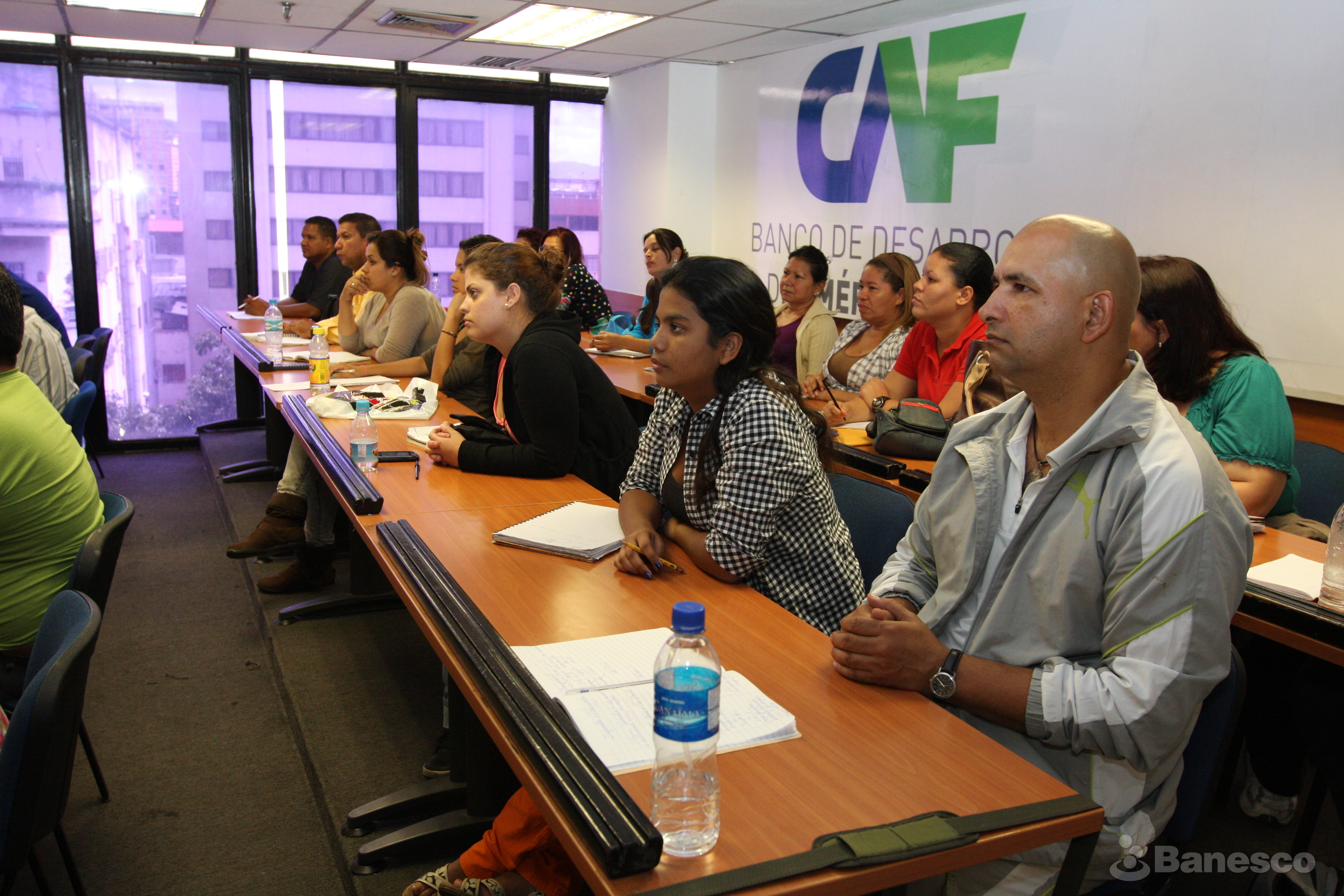 Emprendedores durante las clases impartidas en el marco del Programa de Formación de Microempresarios (PFM), dictado por personal de Banesco en alianza con el Instituto Universitario de Gerencia y Tecnología (IUGT), con el fin de brindar herramientas administrativas y conocimientos financieros para aumentar la producción de sus negocios.