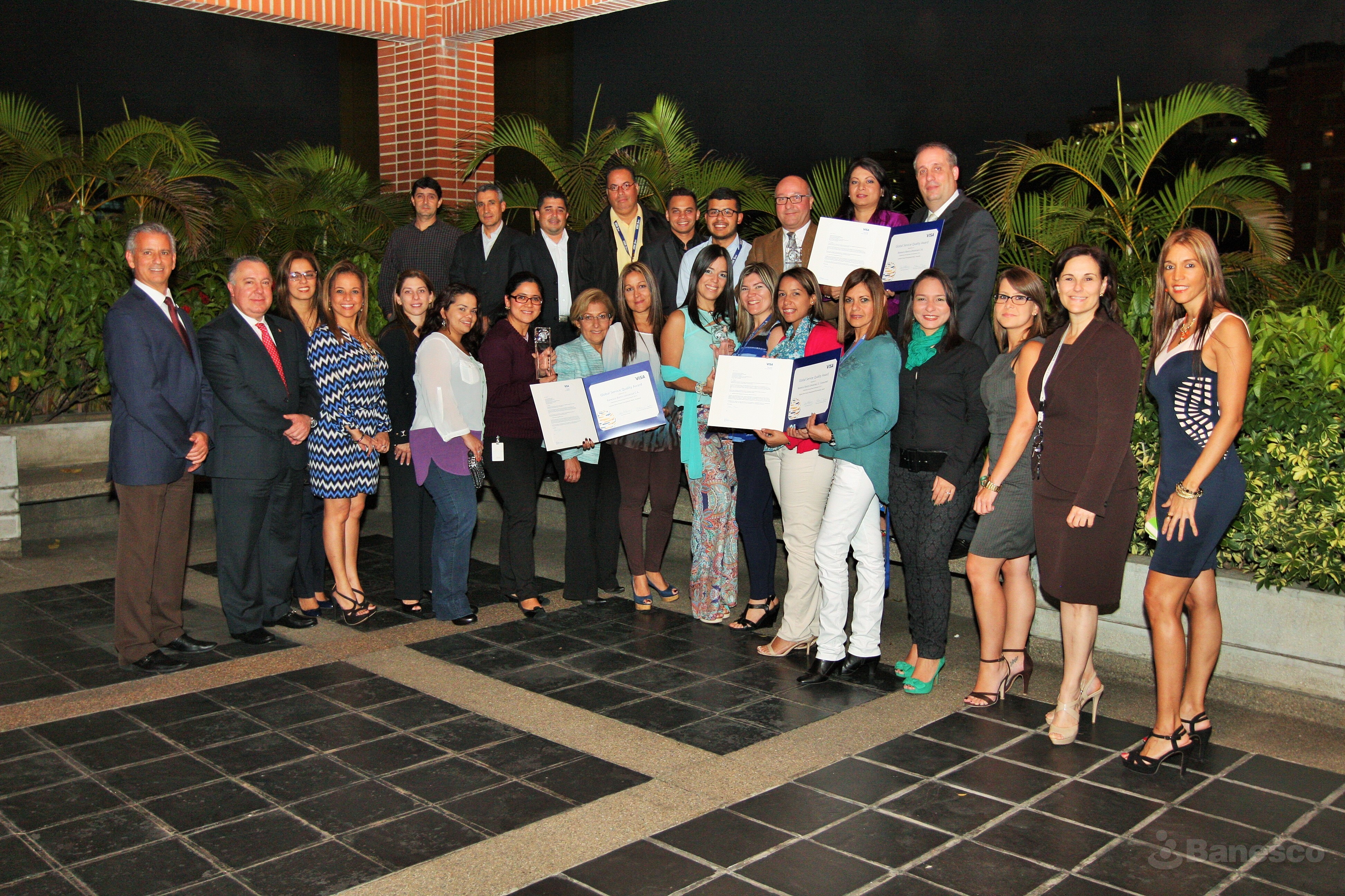Representantes de Banesco Banco Universal y Visa en la entrega de los reconocimientos por el excepcional desempeño durante el año 2013.