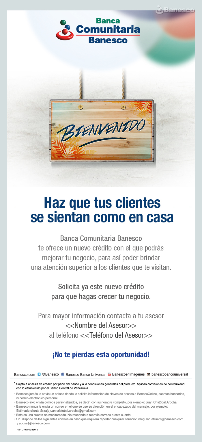 Banca Comunitaria Banesco te ofrece un nuevo crédito con el que podrás mejorar tu negocio, para poder brindar una atención superior a los clientes que te visiten.