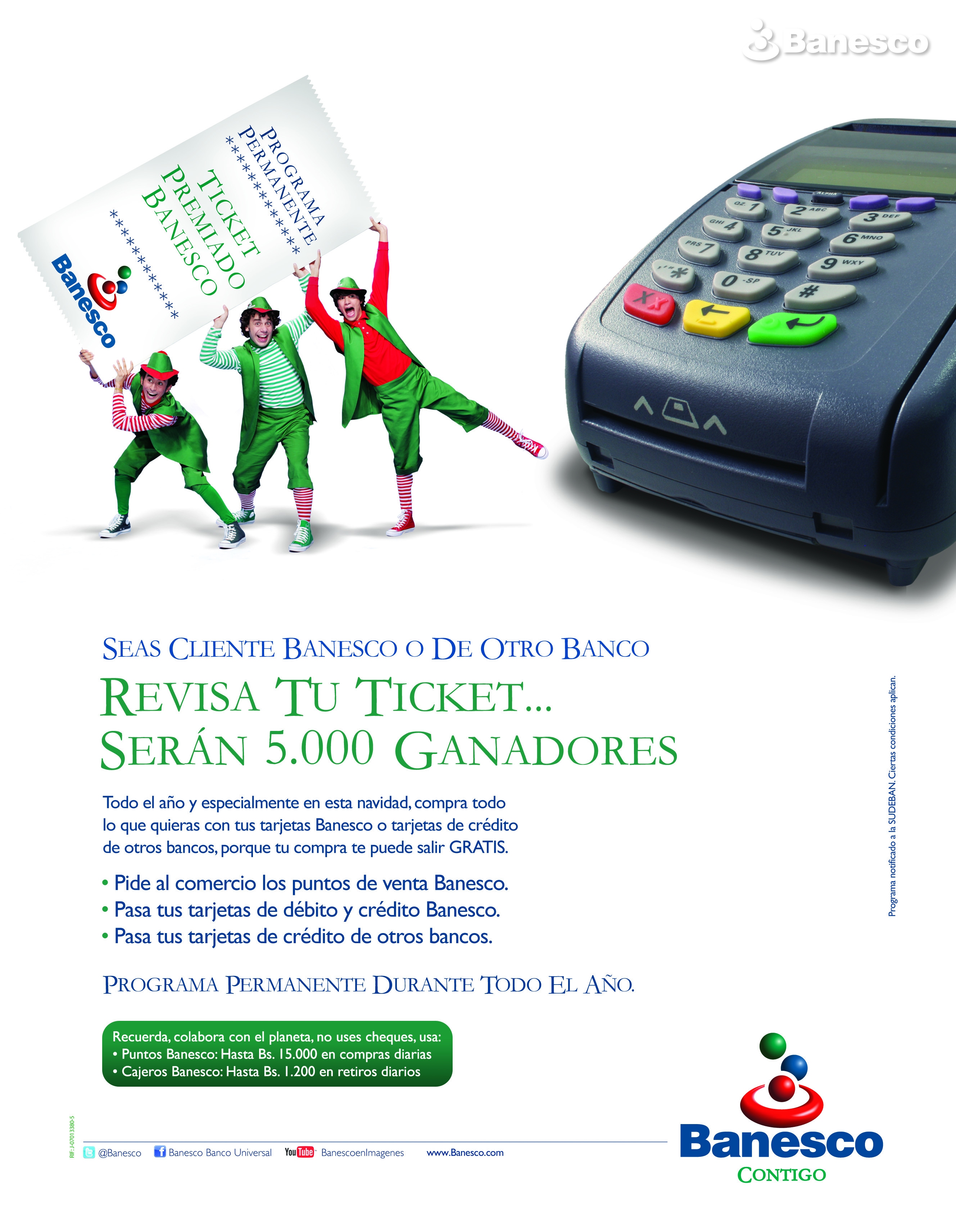 Impulso uso de Puntos de Venta y Tarjetas Banesco y Otros Bancos durante Navidad como parte del Programa Permanente de TicketPremiado Banesco.